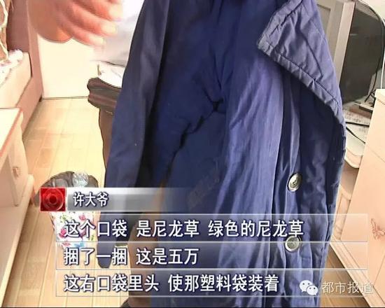 许大爷的儿子和女儿常年在外地打工,多年来,老人靠着卖粮食和孩子们定期往家里寄的钱,总共攒了10万块,他原想着今年拿这些钱给儿子办婚事,也就没把钱存进银行,而是藏到了家里一件旧大衣的口袋里。