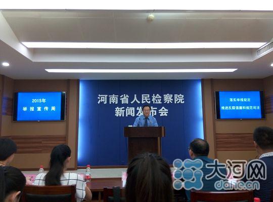 大河网讯 (记者 宋向乐)6月23日,河南省检察院召开2015年举报宣传周新闻发布会。河南省检察院副检察长王广军在会上提到,2014年1月至2015年5月,全省共立案侦查职务犯罪案件4187件5885人,其中,贪污贿赂犯罪3177件4210人,渎职侵权犯罪1010件1675人;立案侦查县处级以上要案363人,其中厅级干部55人,保持了惩治腐败犯罪的高压态势。