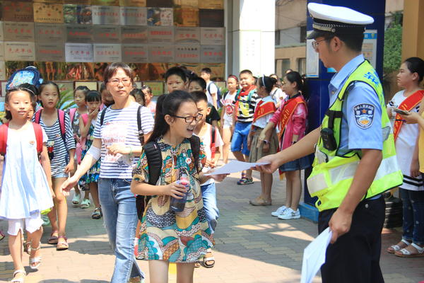 8月27日开学首日一大早,郑州交警三大队走进郑州市二七区外国语小学,发放《中小学生文明行为倡议书》,倡导中小学生做文明交通的宣传员和践行者,发挥“小手拉大手”的作用,坚决不乘坐机电动三轮车,向家人、朋友宣传《关于进一步加强机(电)动三轮车、机(电)动四轮车管理的通告》。