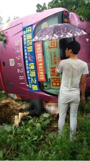南阳唐河载24人客车翻入路边沟内 致4人死亡