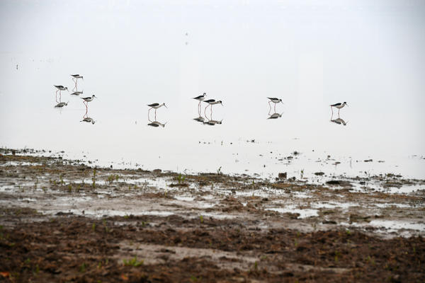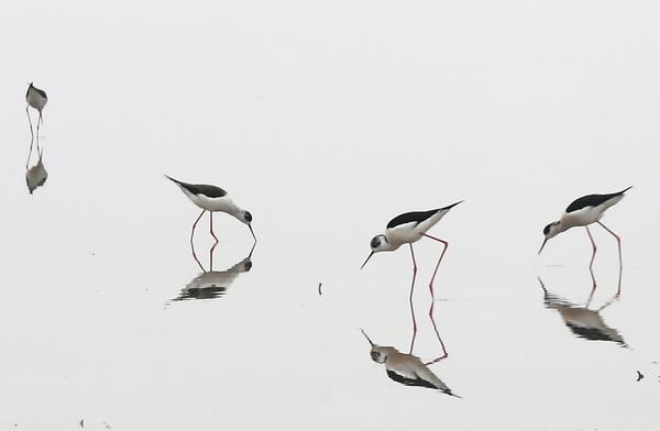 人间四月天,情深雨蒙蒙。连日来的降雨,让郑州笼罩在蒙蒙水雾中。4月22日,大河报·大河客户端记者在郑州北湖湿地公园(官方准确叫法)浅水处,发现了成群的长脚鹬。