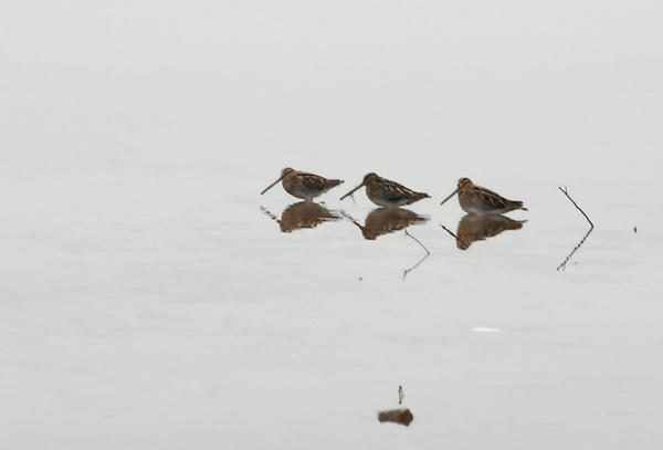 22日中午,成群长脚鹬栖息在北龙湖北岸浅水处觅食。记者用长脚照相机抓拍到这些候鸟的身影,大约20只长脚鹬站在浅水滩涂,时不时低头觅食。除了长脚鹬,几十只扇尾沙锥也栖息在该处,这类鸟嘴长,但腿没那么长,和长脚鹬形成“高低搭配”。