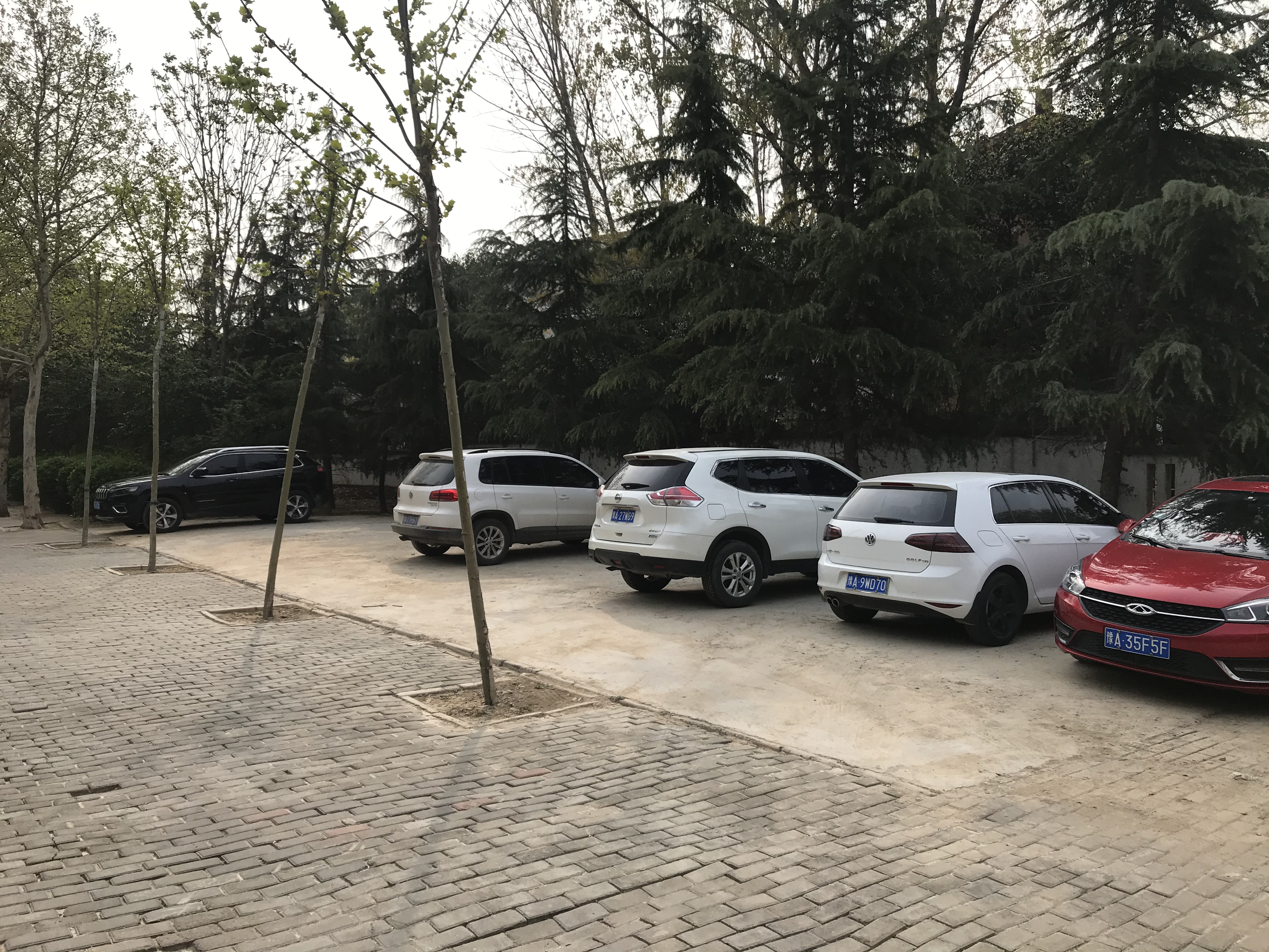3月31日上午,记者来到位于开元路与桂圆南街路交叉口附近的水映唐庄小区。与西边不同,小区北门东边紧挨着的并不是绿化带,而是一片长约22米,面积约200㎡的水泥地,五辆汽车在水泥地上停放着。