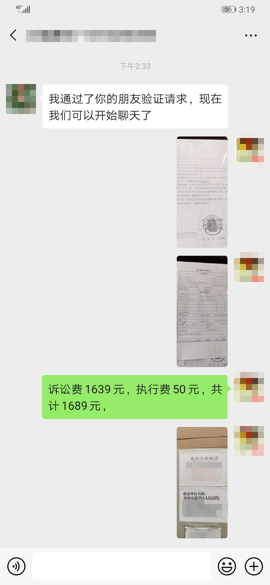 你的微信朋友圈里有法官朋友吗?郑州市的甘某就加了一位法官朋友,聊的还挺好。3日,记者从郑州市惠济区人民法院了解到一起案例,因为一起交通事故纠纷执行案,败诉后拒绝承担诉讼费的甘某因为1639元被法院冻结银行账户。甘某遂主动添加法官微信。