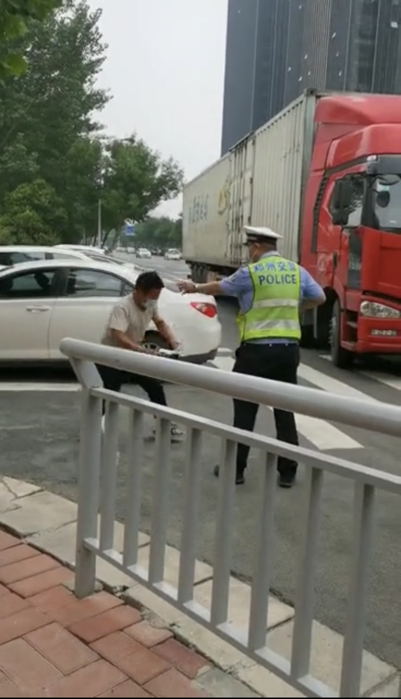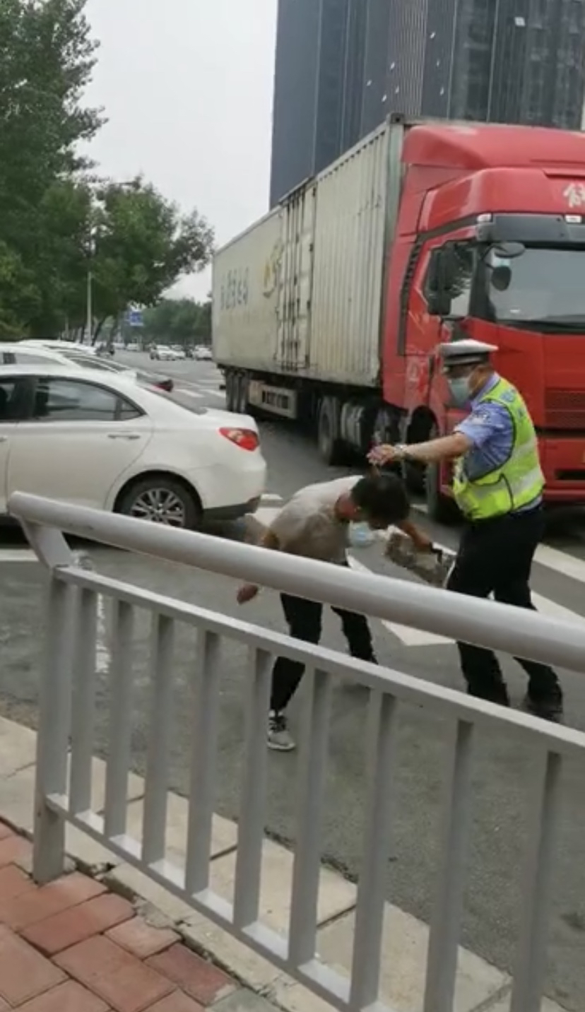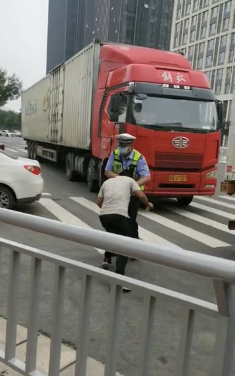郑州一大货车闯限行被处罚,司机突然情绪激动对交警使出“铁头功”