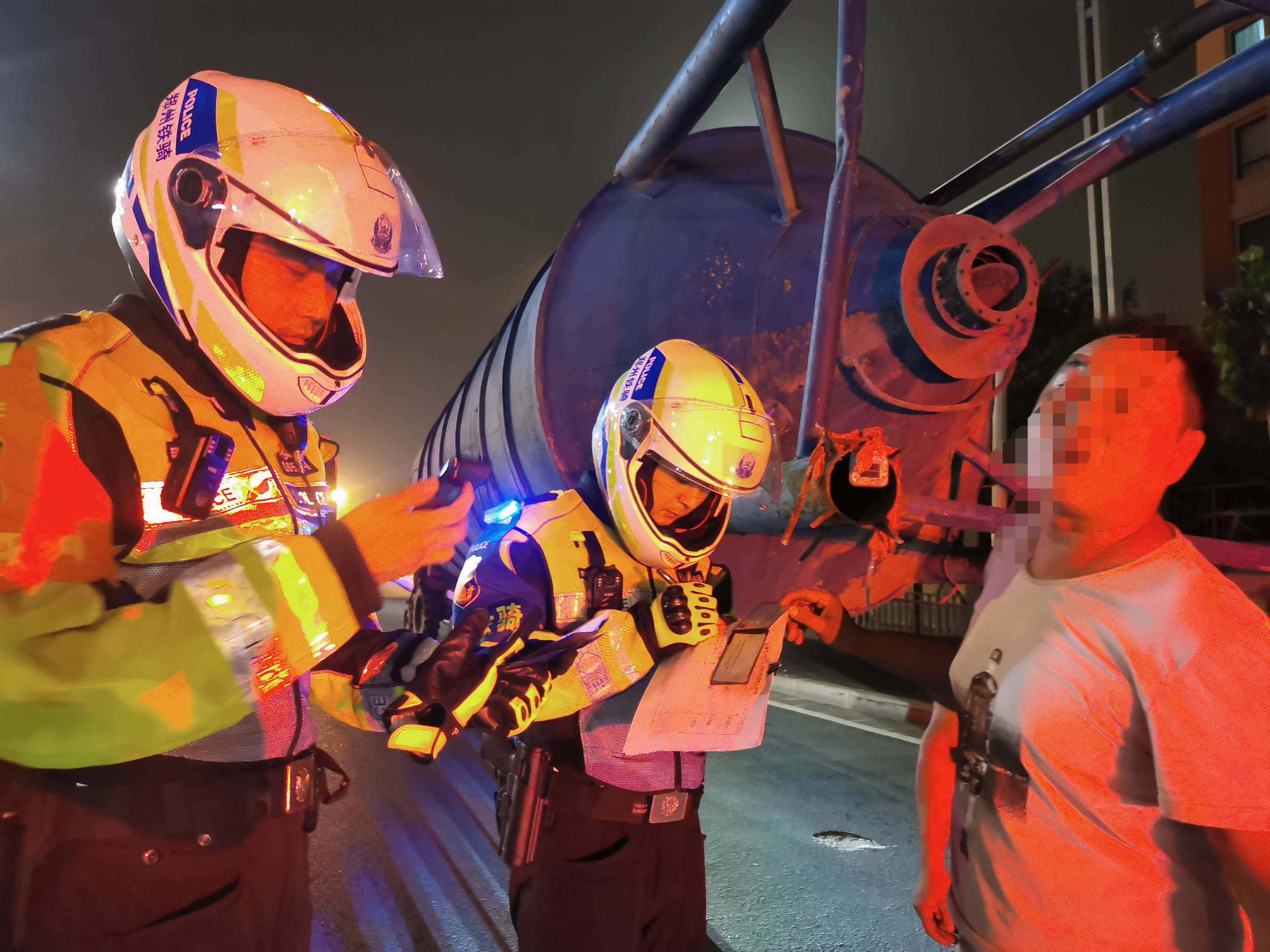 6月23日晚8时整,参与第三次“夜鹰行动”的40名铁骑在支队大院内集结,经过简短整队部署,20名警力前往在农业路高架嵩山北路南北两个下桥口设置卡口,重点查处酒驾等严重交通违法行为。此外,20名铁骑分十组在市区高架桥上开展流动巡逻,重点查处大货车、拖拉机、农用车遮挡号牌,闯禁行等违法行为。