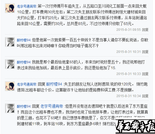 这件事还没结束。8月27日,网友“芭啦啦是魔法师”在微博上爆料说:朋友丢包后请出租车师傅送过来,被索要120元钱,最后给了65元钱,拿回了包。
