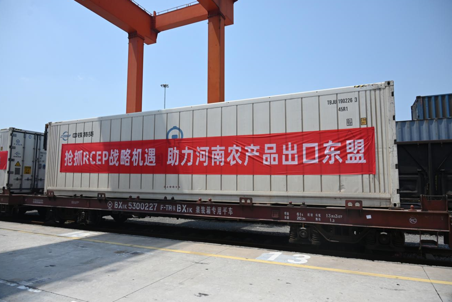 首趟郑州至东盟农产品出口专列发车