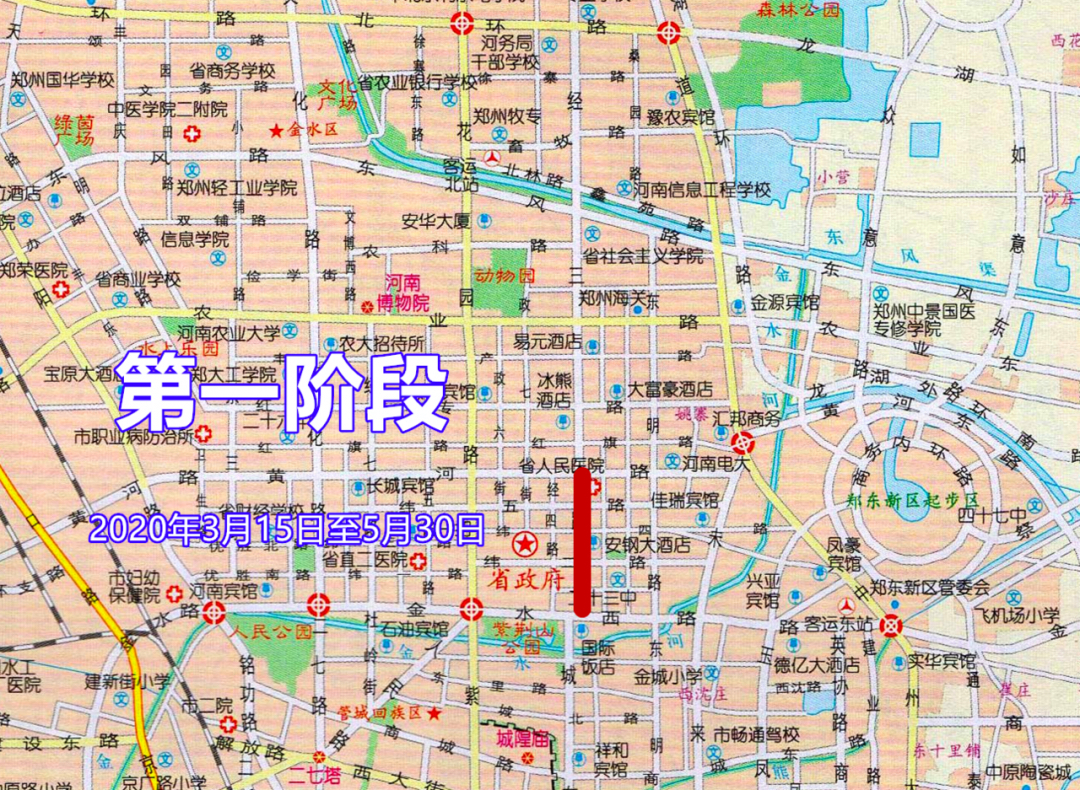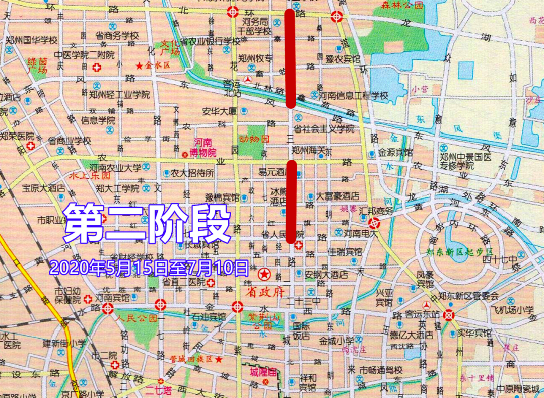 施工路段及时间:农业路—东风路和城北路—金水路(2020年7月5日—2020年9月30日)