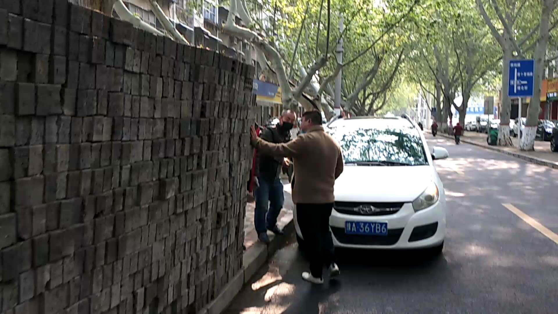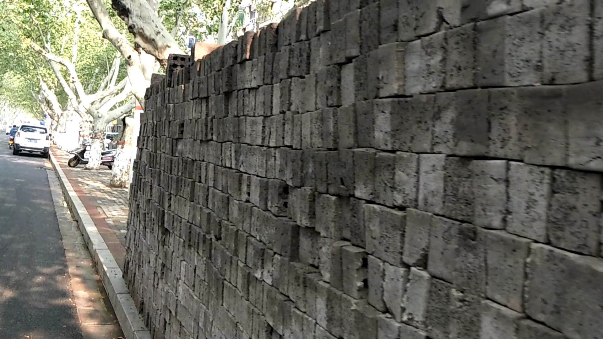 4月11日上午11时许,司机王师傅驾驶一辆轿车行至煤仓北街20号院门口附近,看到紧靠机动车道的人行道上,堆了一堵长约4米,高约2米,宽约40厘米的“砖墙”,说是“墙”,实际上只是堆在一起的空心砖。由于这些砖没有摆整齐,加之地面不太平坦,该“墙”明显倾斜,摇摇欲坠,随时有坍塌的可能。为避免自己的车被这堵“危墙”砸中,王师傅赶紧打方向躲避。
