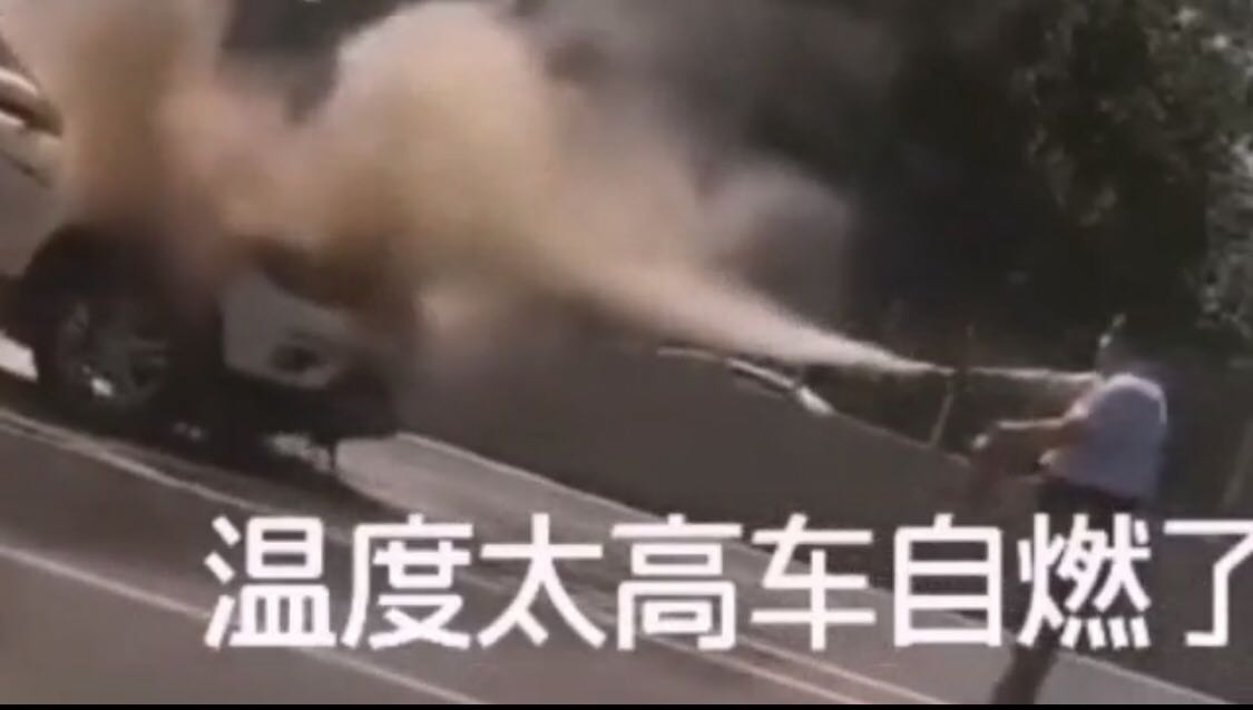 高温又惹祸!郑州一私家车路边自燃浓烟滚滚连用俩灭火器都不行