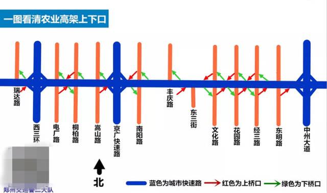 来自郑州市交巡警二大队的信息,目前农业路高架东向西方向已开通的上桥口有8个: