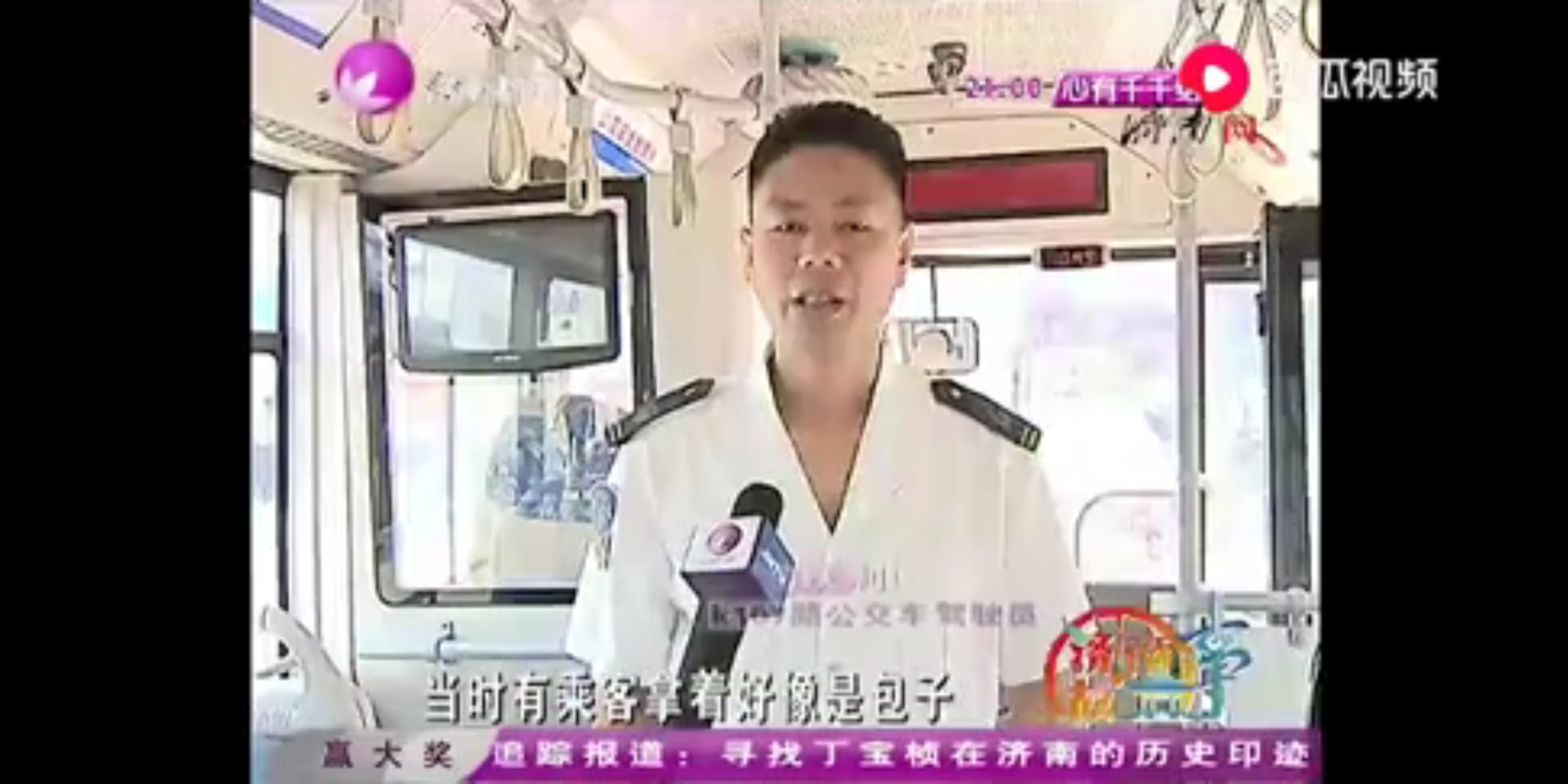 视频显示,2019年6月12日上午8点多,一位男子抱着孩子,带着一位女子,上了济南K107路公交车,上车后,该男子称身上没钱,只投了4毛钱,并说孩子有白血病,给孩子看病花了几十万了,孩子妈妈着急得了精神病,孩子一天没有吃东西了,弟弟下午两点多会来医院来接他们,谁有吃的给孩子吃一口,车厢内乘客和车长纷纷慷慨解囊。