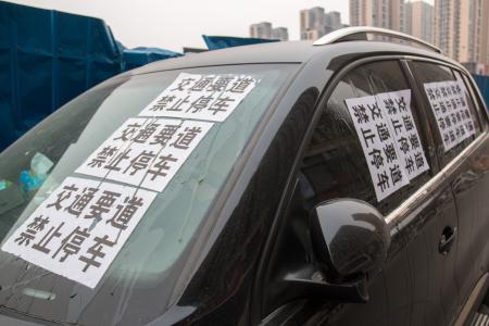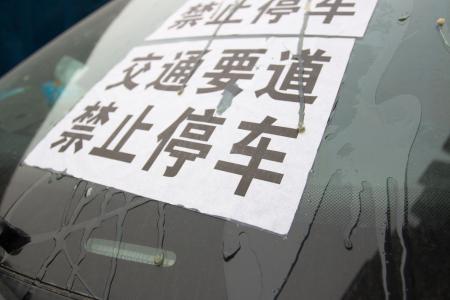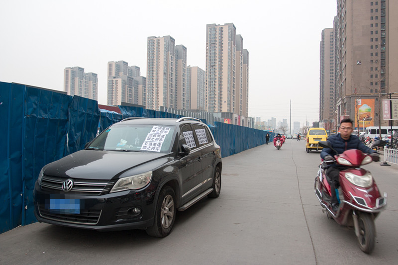 1月7日,郑州市凤凰茶城附近很多停靠在路边的车辆都被贴了特殊的"白条",“白条‘’上印着 "交通要道,禁止停车"八个大字,被贴的车辆在路边格外显眼。
