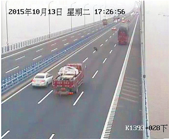前天下午5点27分,在G15沈海杭州湾跨海大桥往福建方向1393公里处,一辆悬挂着宁波牌照的红色重型仓栅式货车缓缓驶过。