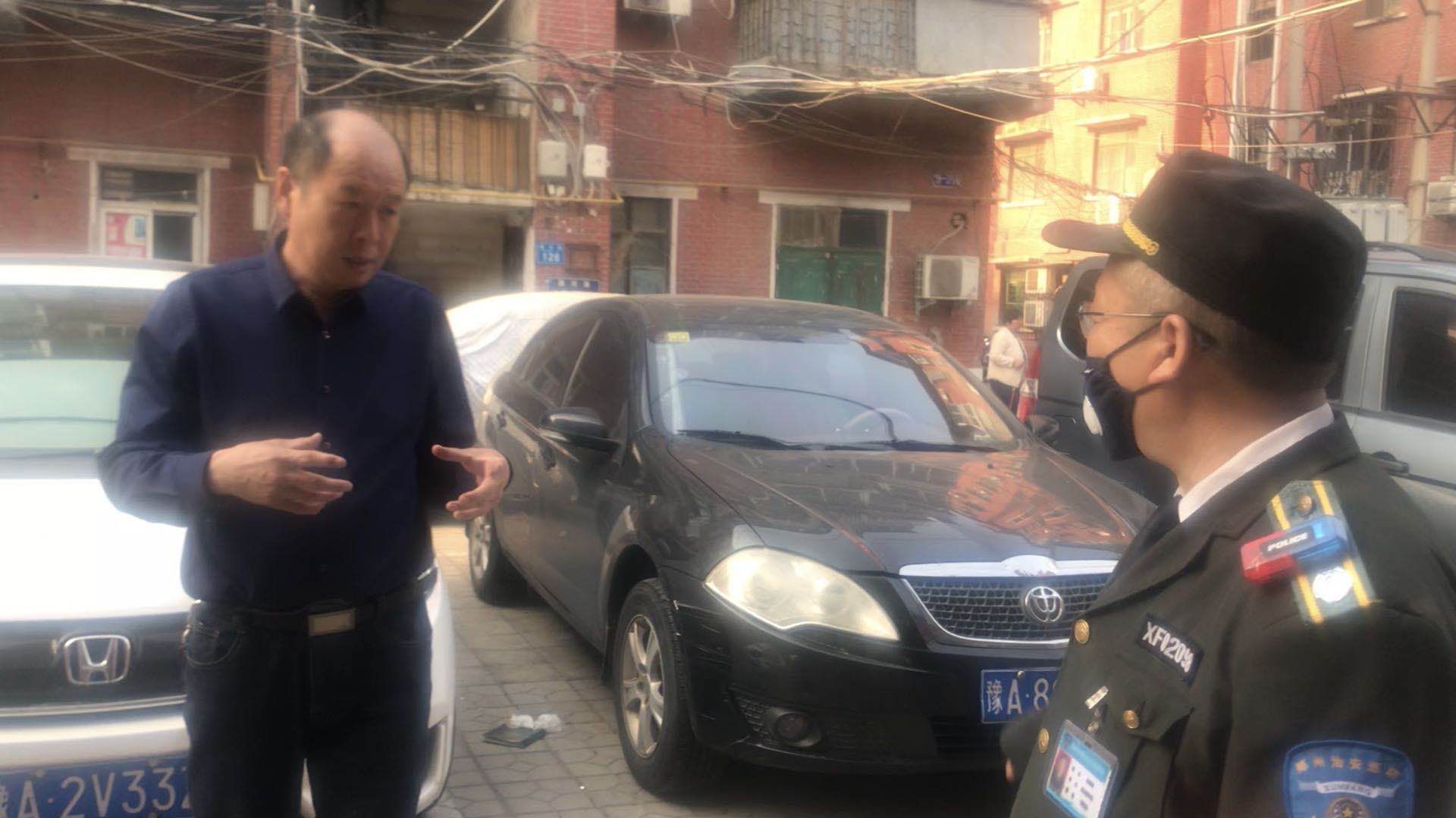 因车上没留车主电话,为确保安全,巡防队员一人现场守护禁止其他居民接近轿车,另一名队员到楼下扯起嗓门高声呼喊:楼下谁的轿车漏油了,赶快下楼看看……