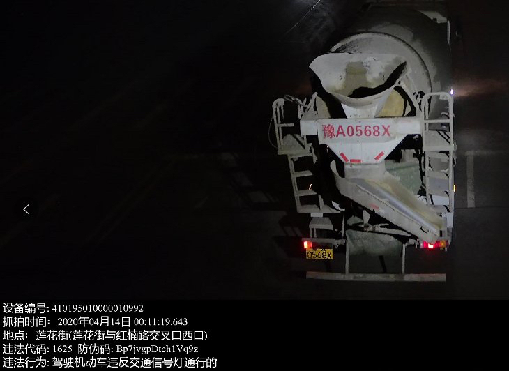4月19日上午,郑州交警二大队公开曝光了4辆违法闯红灯的大货车和水泥罐车。民警告诉大河报·大河客户端记者,一些大型货车和水泥罐车的车牌号码都安装在货斗下方,而电子警察抓拍设备安装在路口上方,在抓拍这些车辆交通违法行为时,对部分车辆尾部的车牌号码会出现抓拍不全或抓拍不上的情况,造成电子警察抓拍系统无法正常识别。因此,个别货车驾驶员认为有机可乘,在路口频频闯红灯。