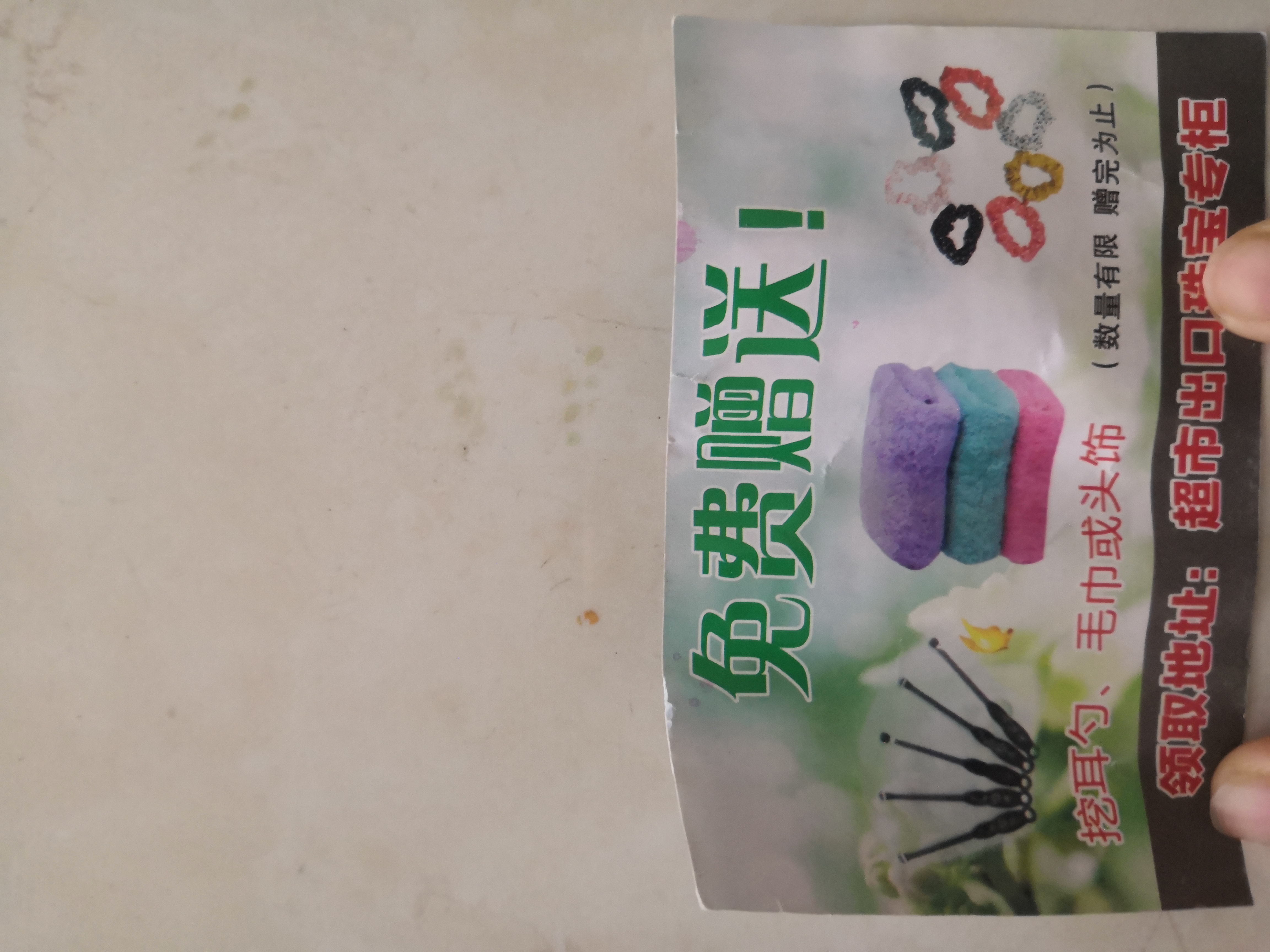 这些礼品,该女士说,有挖耳勺、小毛巾、三样手环等。