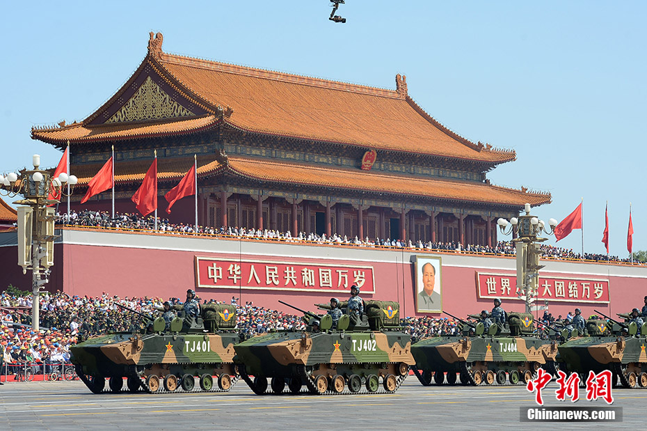 十八大以来,中国军队聚焦新形势下的强军目标,在政治建军、改革强军、科技兴军、依法治军的征程上,不断突破进取。火箭军锻造战略重拳,航母编队出海跨区集训,抗战胜利70周年大阅兵振奋全球华人,朱日和沙场阅兵一展铁军本色。走过90年光辉历程的威武之师,正朝着建设世界一流军队的目标砥砺奋进。图为2015年9月3日,纪念中国人民抗日战争暨世界反法西斯战争胜利70周年大会在北京隆重举行。