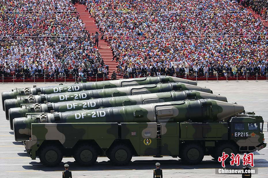 十八大以来,中国军队聚焦新形势下的强军目标,在政治建军、改革强军、科技兴军、依法治军的征程上,不断突破进取。火箭军锻造战略重拳,航母编队出海跨区集训,抗战胜利70周年大阅兵振奋全球华人,朱日和沙场阅兵一展铁军本色。走过90年光辉历程的威武之师,正朝着建设世界一流军队的目标砥砺奋进。图为2015年9月3日,纪念中国人民抗日战争暨世界反法西斯战争胜利70周年大会在北京隆重举行,反舰弹道导弹方队接受检阅。
