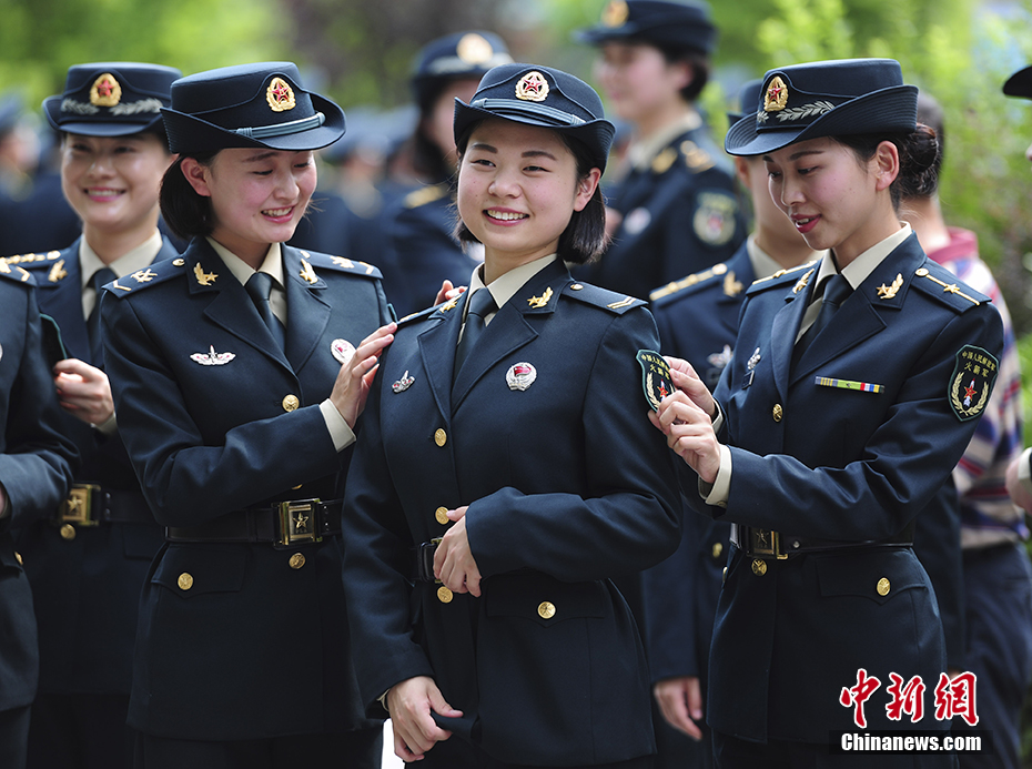 十八大以来,中国军队聚焦新形势下的强军目标,在政治建军、改革强军、科技兴军、依法治军的征程上,不断突破进取。火箭军锻造战略重拳,航母编队出海跨区集训,抗战胜利70周年大阅兵振奋全球华人,朱日和沙场阅兵一展铁军本色。走过90年光辉历程的威武之师,正朝着建设世界一流军队的目标砥砺奋进。图为火箭军部队换发新式礼(常)服,火箭军某团通信营女兵相互整理军容。