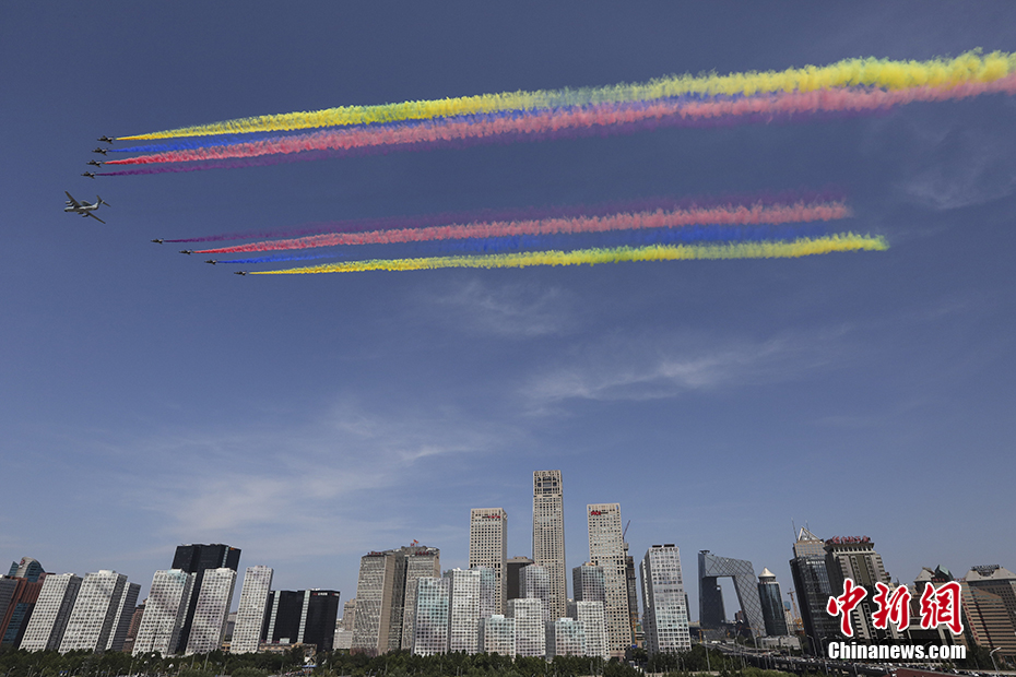 十八大以来,中国军队聚焦新形势下的强军目标,在政治建军、改革强军、科技兴军、依法治军的征程上,不断突破进取。火箭军锻造战略重拳,航母编队出海跨区集训,抗战胜利70周年大阅兵振奋全球华人,朱日和沙场阅兵一展铁军本色。走过90年光辉历程的威武之师,正朝着建设世界一流军队的目标砥砺奋进。图为2015年9月3日,纪念中国人民抗日战争暨世界反法西斯战争胜利70周年大会在北京隆重举行,受阅领队机梯队飞过北京CBD上空。