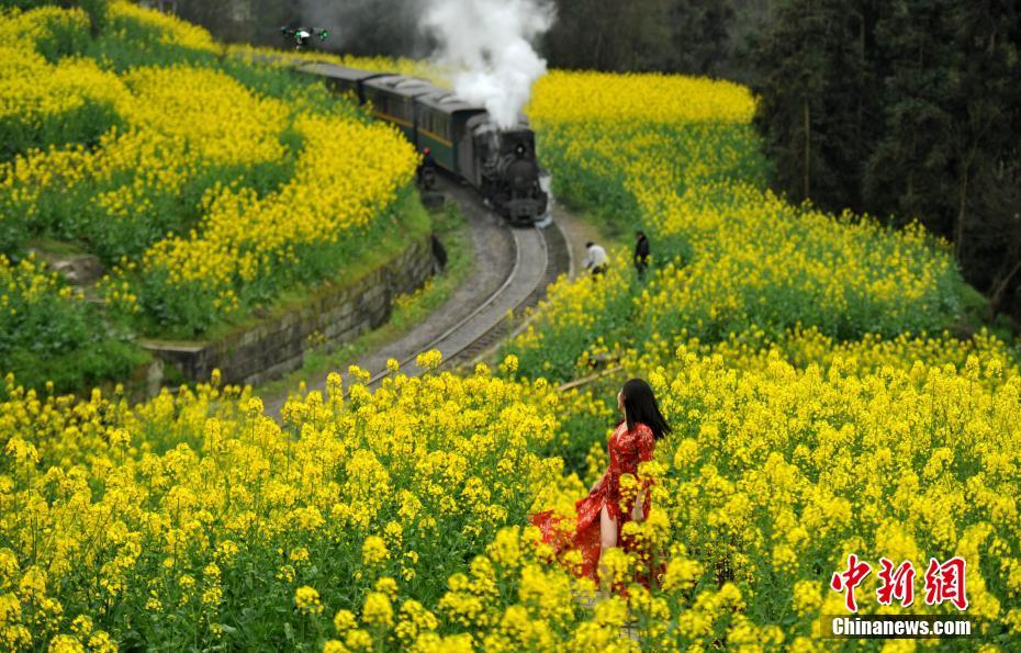 2017年中国环境日的主题是:“绿水青山就是金山银山”,旨在动员引导社会各界保护自然环境,践行循环发展,共同建设美丽中国。五年来,生态文明建设受到前所未有的重视,绿色发展和绿色生活成为大势所趋。“草木植成,国之富也。”当生态优势转变为经济优势,当美丽风景带来崭新动能,“生态红利”、“生态反哺”效应愈加显著。图为2017年3月2日,四川犍为,游客乘坐蒸汽小火车畅游油菜花海。中新社记者 刘忠俊 摄