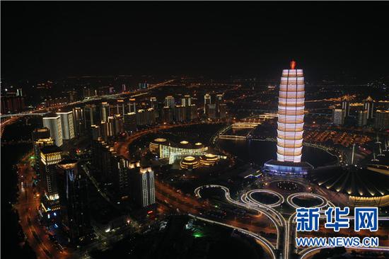 这是无人机拍摄的郑州郑东新区夜景(9月4日摄)。新华社记者 李嘉南 摄