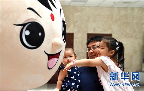 这是市民在观看本届运动会吉祥物“中中”(8月9日摄)。新华社记者 李嘉南 摄