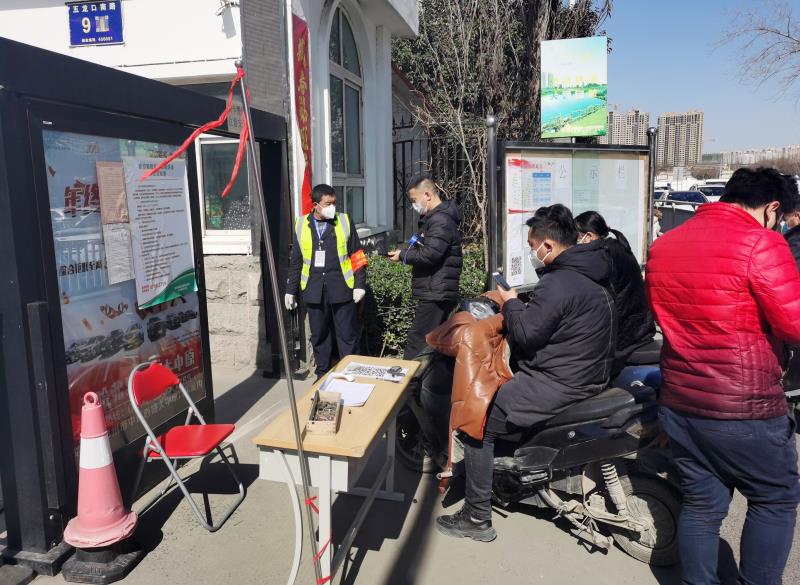 随后,记者又来到了位于高新区冉屯东路附近的西湖春天小区,这里属于石佛办事处辖区,工作人员正在忙碌,门口有居民正在登记相关信息,等待进入。