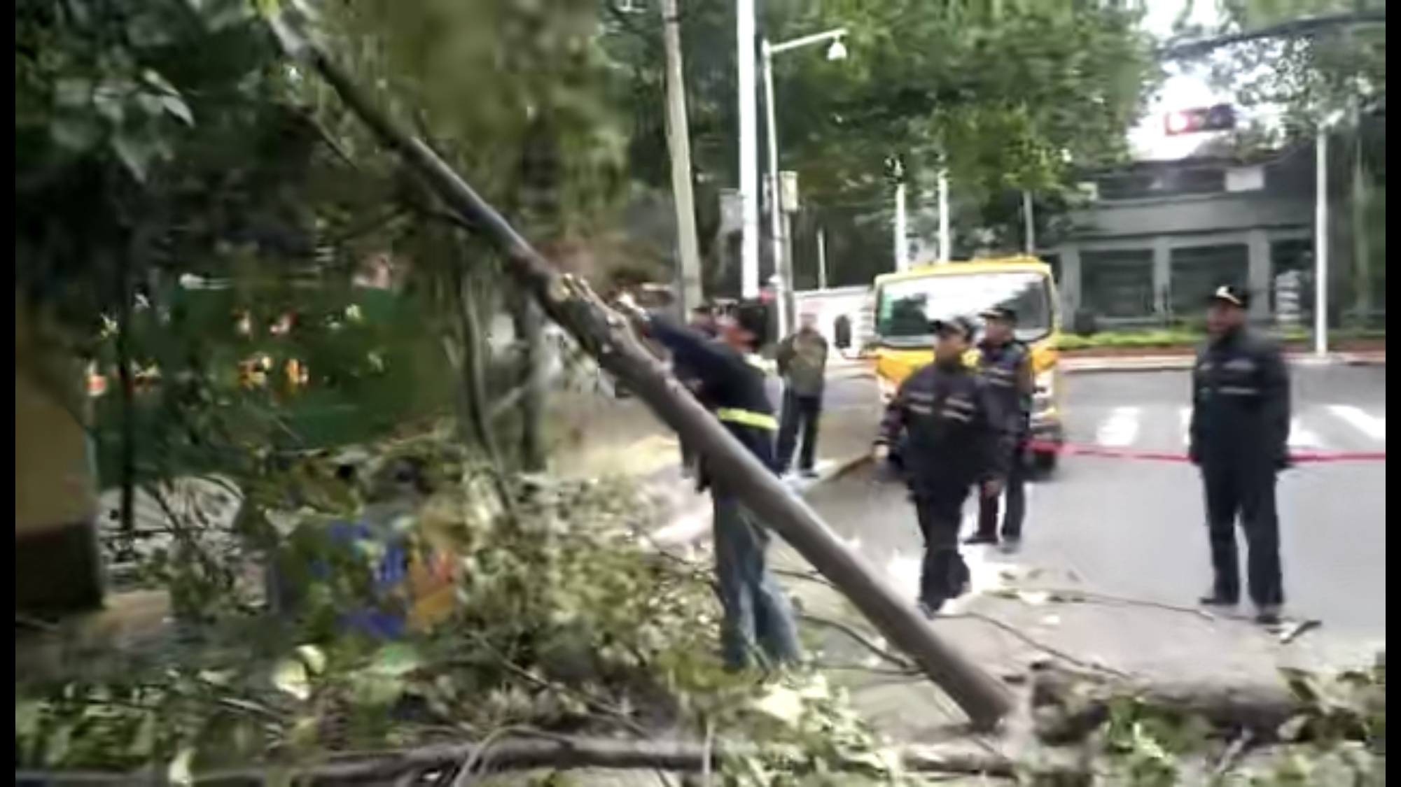 一个小时后,绿化抢险人员赶了过来。他们说树被刮倒的原因是树根埋得较浅,固定不牢,遇到大风大雨天气,很容易被刮倒。
