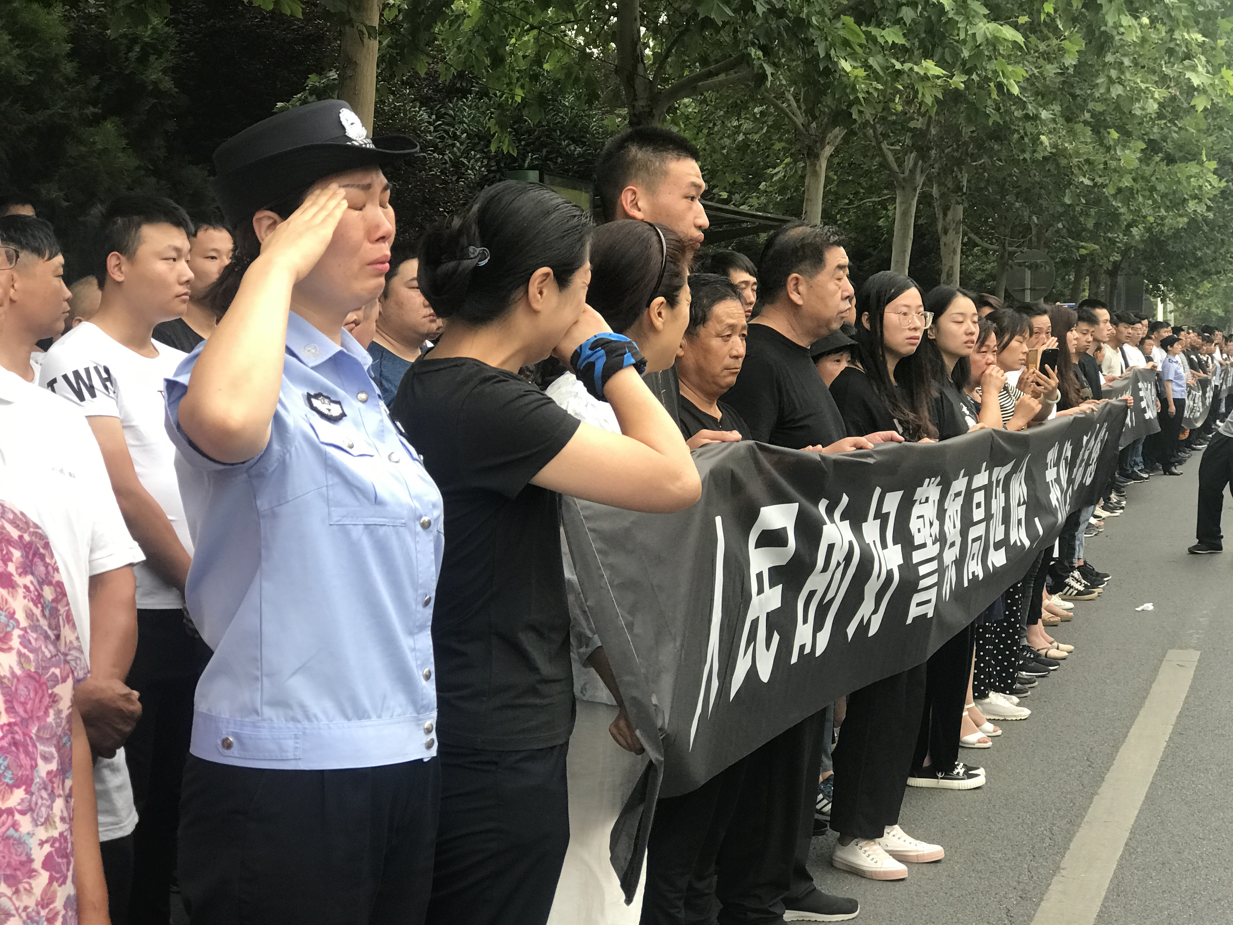 清晨6时许,当载着高延岭同志遗体的灵车缓缓地驶出郑州第七人民医院前往郑州殡仪馆时,医院旁边的道路上站满了前来为高延岭同志送行的群众,绵延数百米。"人民的好警察,我们怀念您!""铁肩担道义,热血铸警魂!"一条条横幅寄托无限哀思,男女老少不约而同地站直了身体,摘下帽子,目送灵车前行,许多人禁不住痛哭失声。