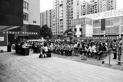 郑州高新区人民法院在小区广场上设置了巡回法庭。