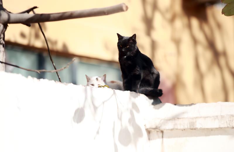 11月25日下午,大河报记者来到了花园路26号院,院内正在美化环境。在低矮的一排平房旁、高耸的院墙上,随处可见来回跑动的猫咪,有的在嬉戏玩耍,有的正在猫窝处觅食。