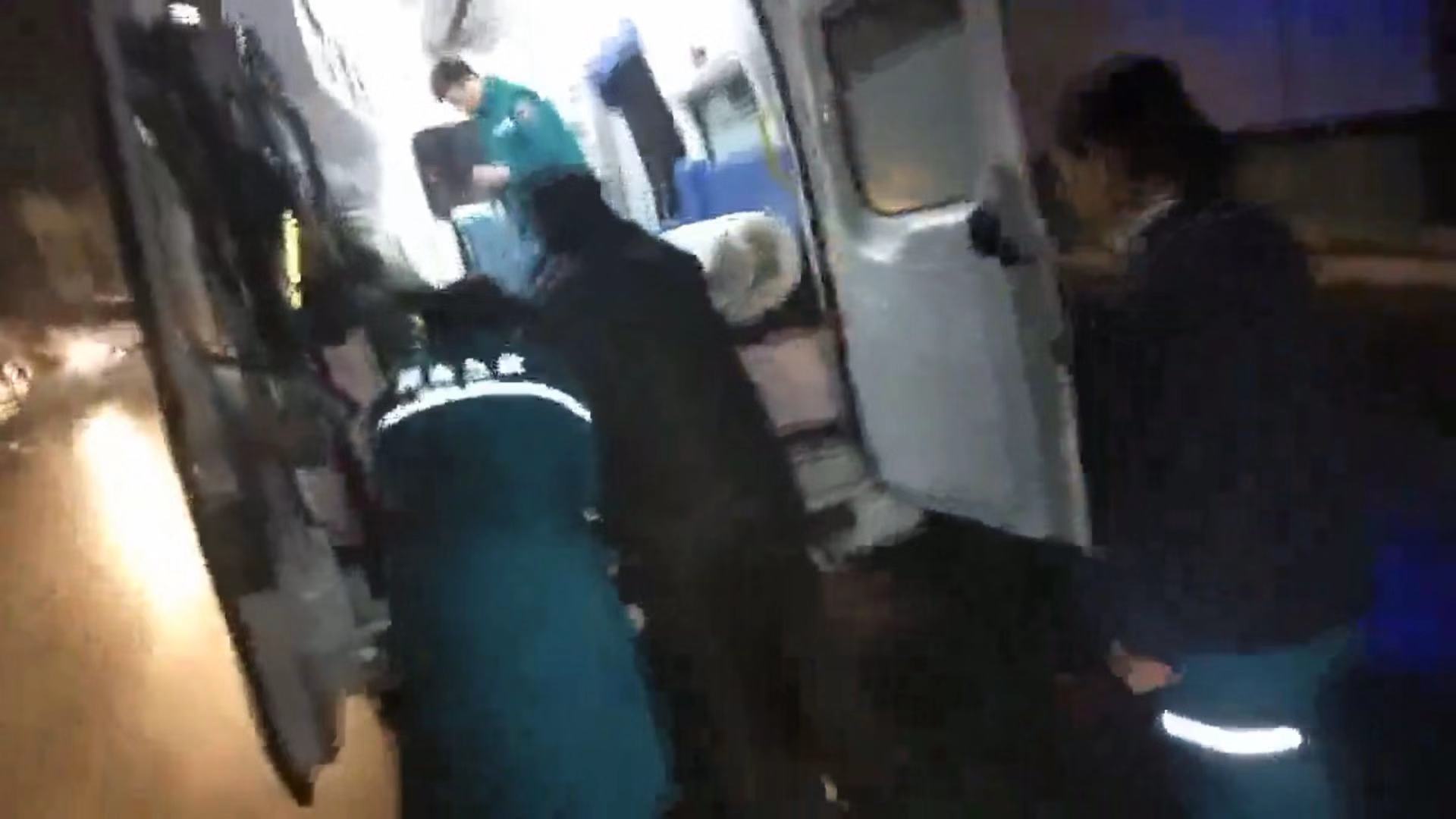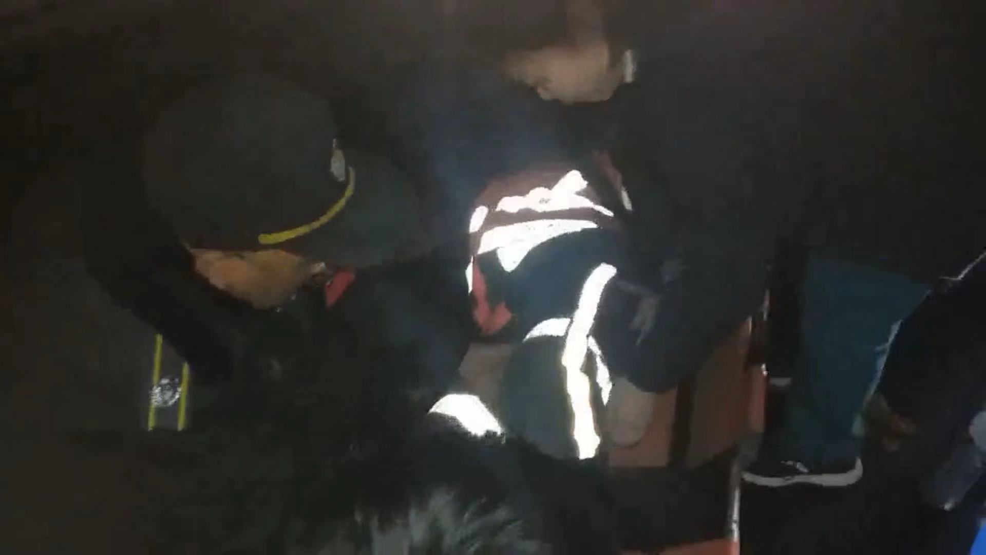 很快,120急救车赶到现场,医护人员现场询问受伤环卫工师傅伤情和家人情况,受伤环卫工疼痛难忍无法正常沟通,大家伙一起联手将受伤环卫工抬上担架上急救车,紧急送医。