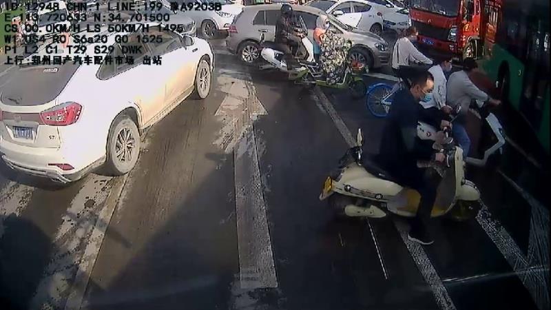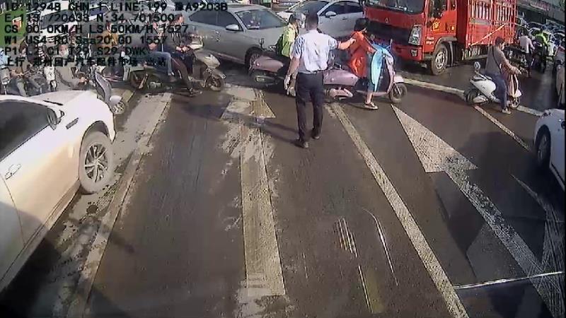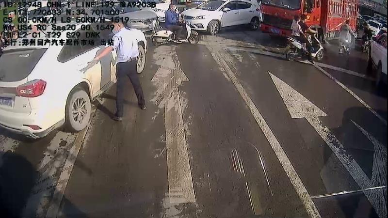 大概3分钟左右后,郑豫炜看到交警来到了现场,路口的交通拥堵情况有所缓解。