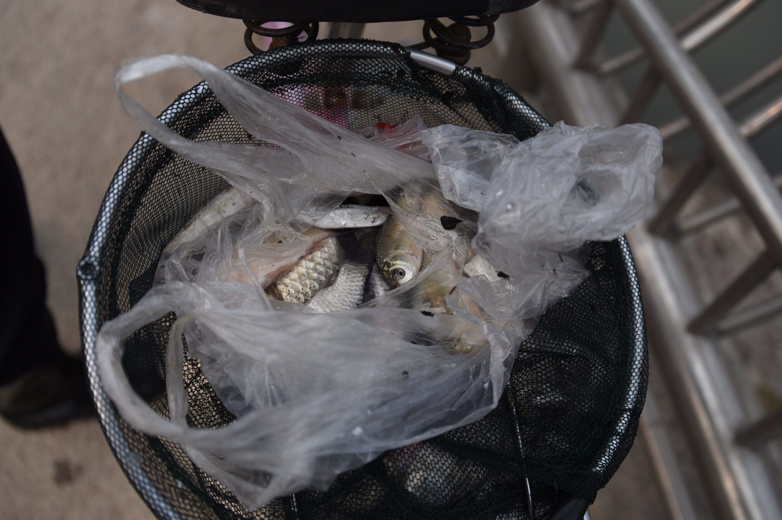“昨天抽水的时候,渠里有三十四人在捞鱼,一开始有人用渔网,不一会就捞了一百多斤,最大的鱼有四、五斤重,这些大鱼可能是从上游的黄河放水时游过来的。”现场一名姓刘的市民说,昨天来这里捕鱼的较多,大多数人只是图个稀罕,但收获颇丰,多的人捕有四、五十斤鱼。