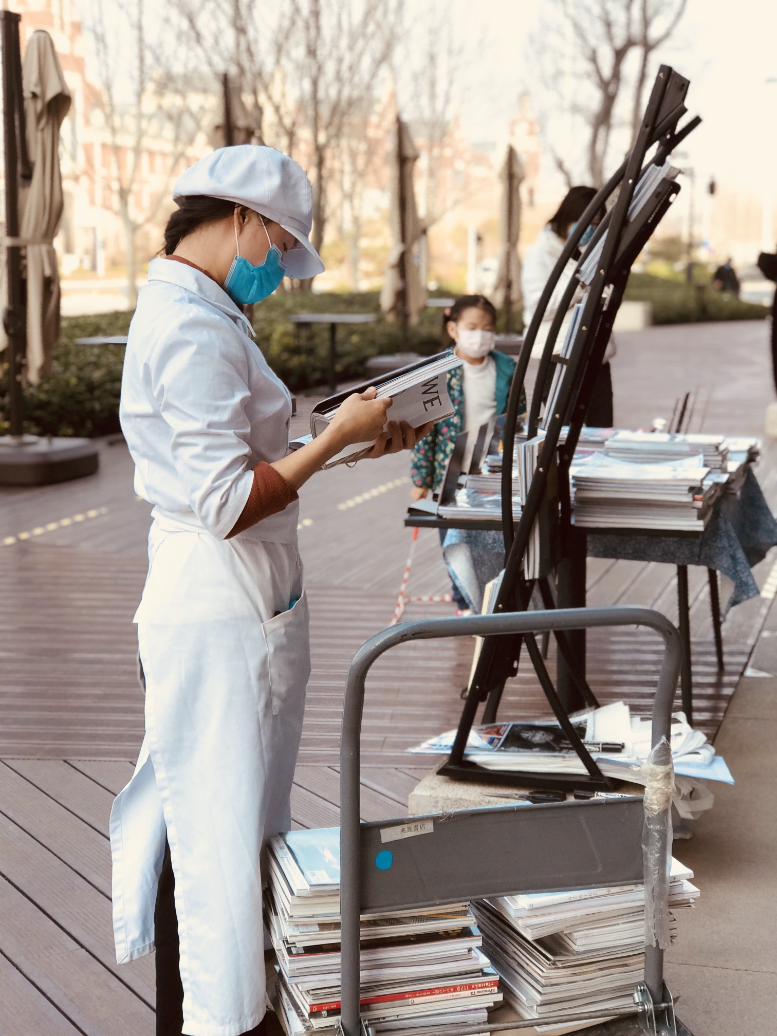 最近几天,郑州东区的兆熹书店,在龙湖里街区摆了杂志摊,希望依靠室外的人流能增加点收入,不过三三两两的人流,收入寥寥。同时,在线上的书友群,也偶尔售卖图书,但对于习惯线下销售的店员来说,线上营销还有些生涩。