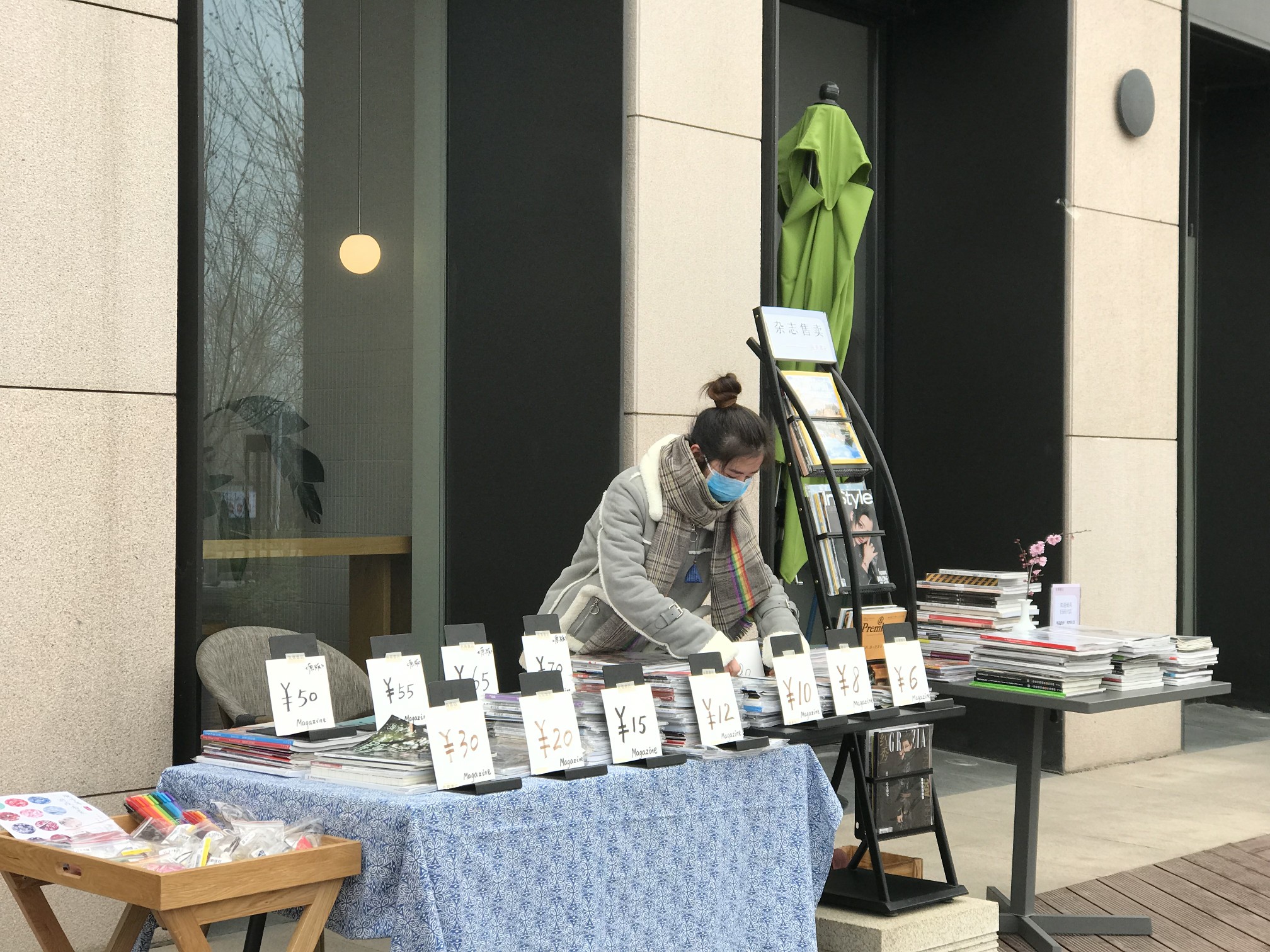 (兆熹书店在龙湖里街区摆了杂志摊)