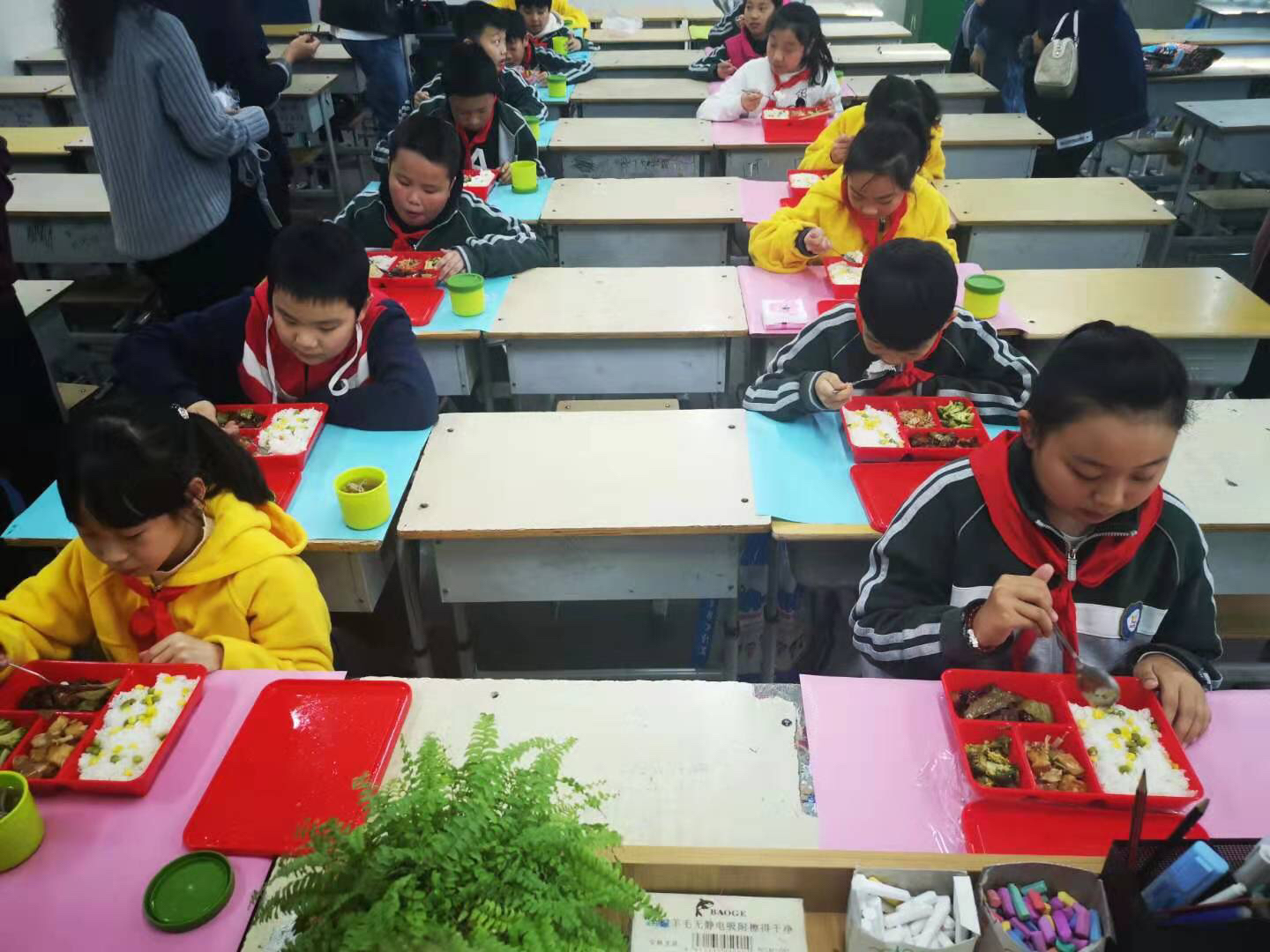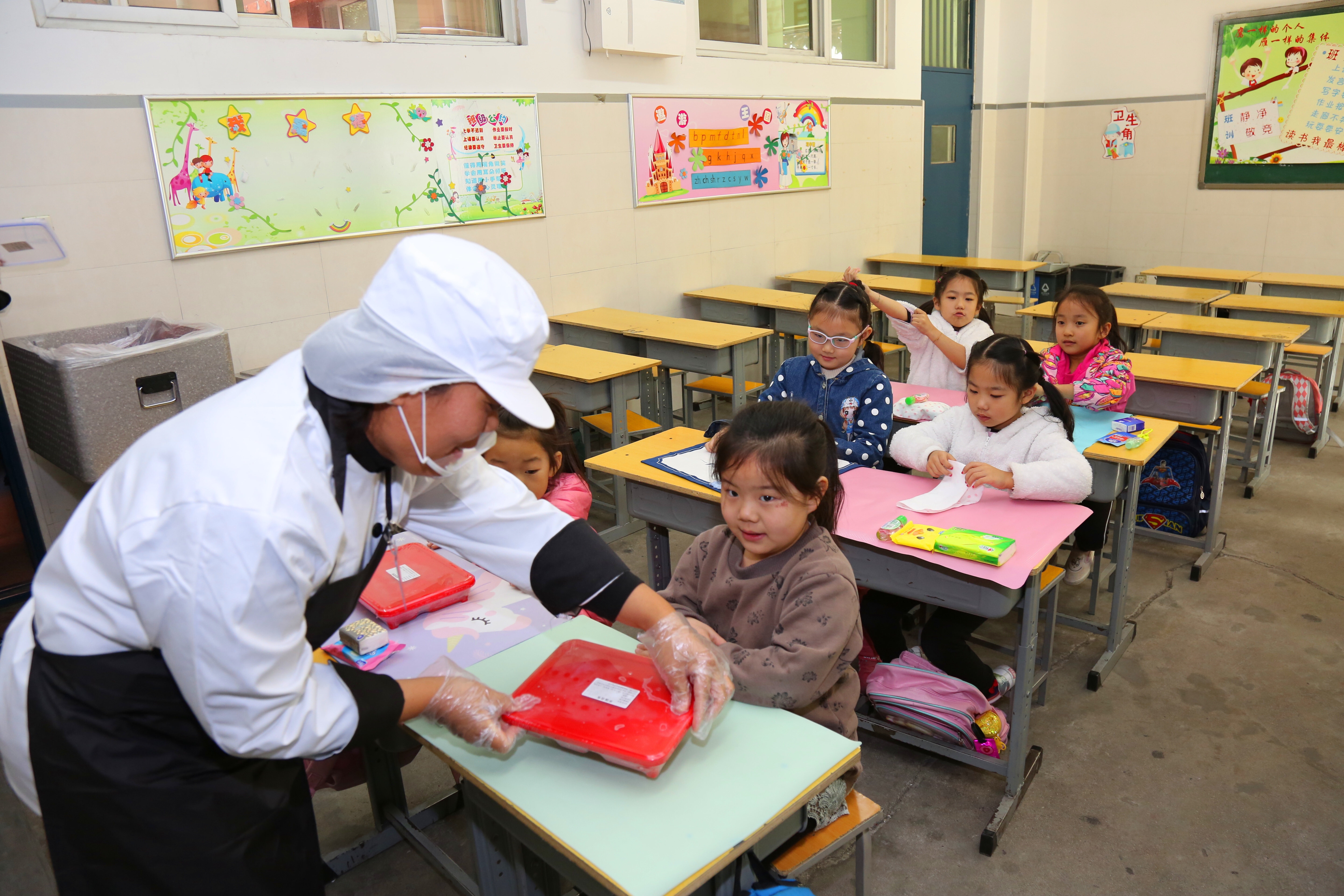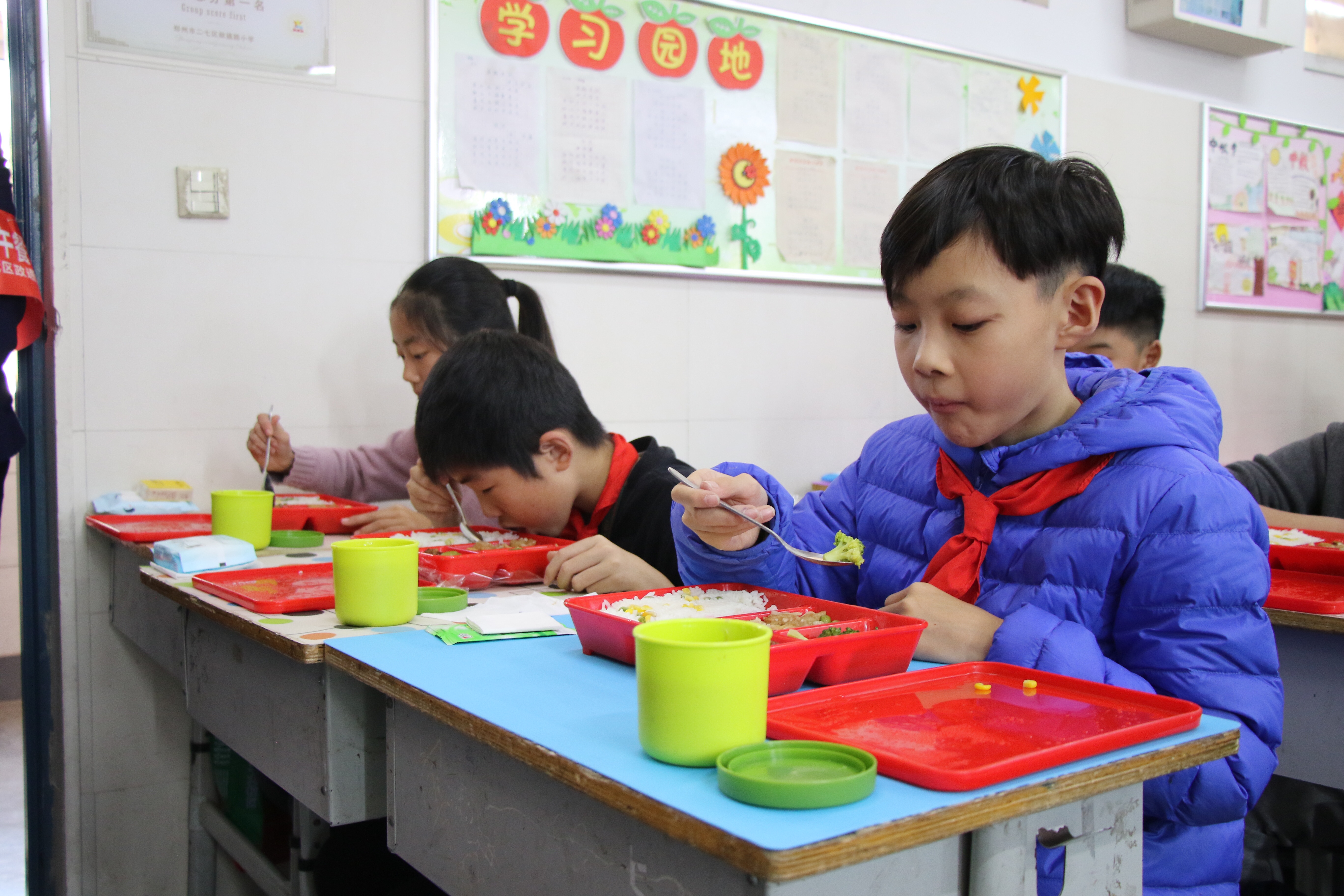 二七区首批6所小学的4300名学生中午吃上配餐