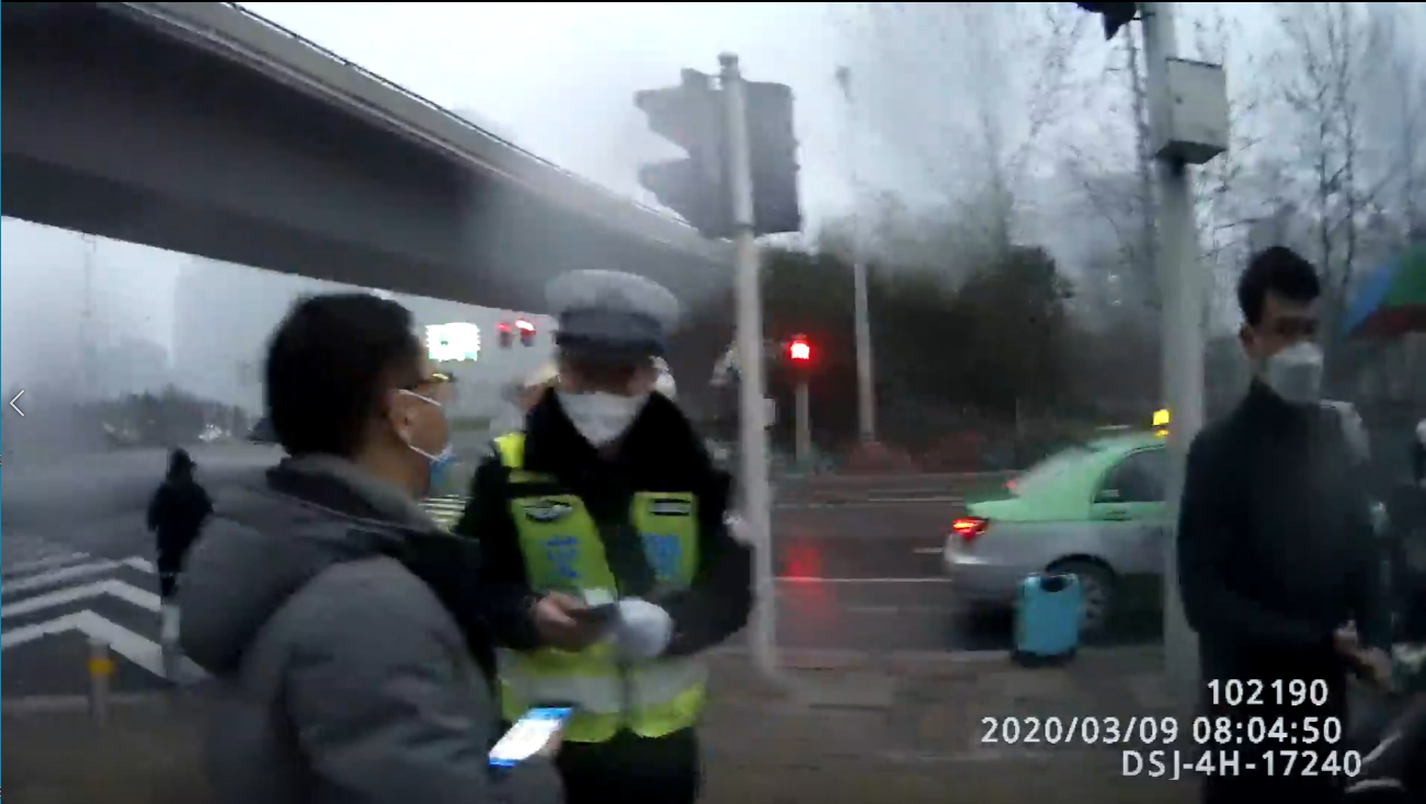 3月9日早上8点,早高峰期间,在郑东新区东风南路站地铁口,一名身穿灰色棉外套的男子在一名黑衣男子的招揽下搭乘一辆装有红蓝顶棚的黑色电动车从地铁口驶向路口。在此蹲守的交警六大队民警立即将其拦截,经询问,黑衣男子涉嫌从事“摩的”非法营运。