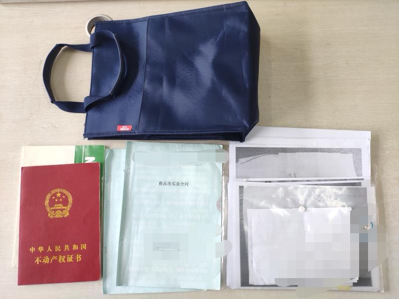 经查看,手提袋里有不动产证,商品房合同,借条,银行流水账等材料,证件上的名字也不一致。