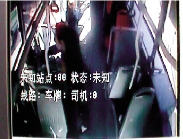 102路公交车上的监控视频记录下老人发病及车内乘客进行救助的场景,戴眼镜的年轻女孩和妈妈协助车长一起帮老人转危为安。