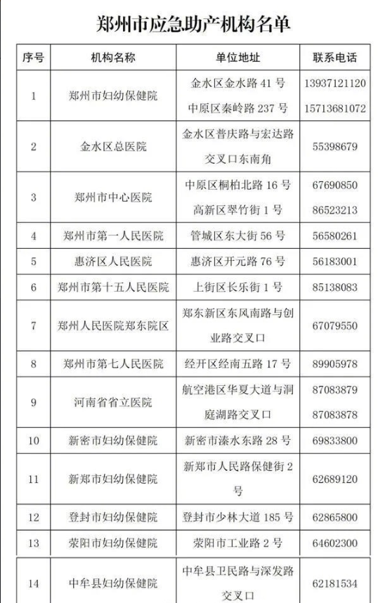 转发提醒!郑州公布疫情期间应急助产机构名单