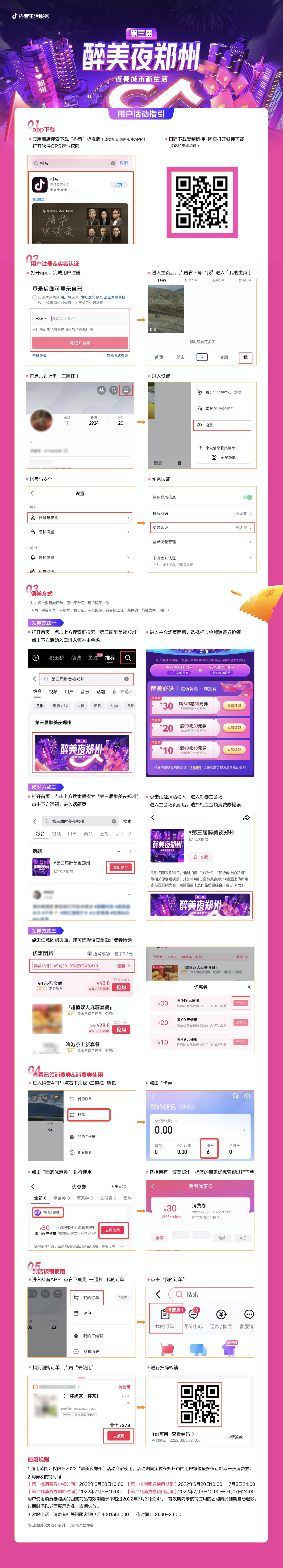 据了解,本次消费券分2批发放,6月20日10时投放第一批,7月6日10时投放第二批。打开抖音搜索“第三届醉美夜郑州”进入主页面,点击抢券入口即可领取10元、20元、30元优惠券,先到先得,抢完为止,每个账户每轮限领1张。消费者也可以通过郑好办“醉美夜郑州”专区,选择线上消费券,点击领取。