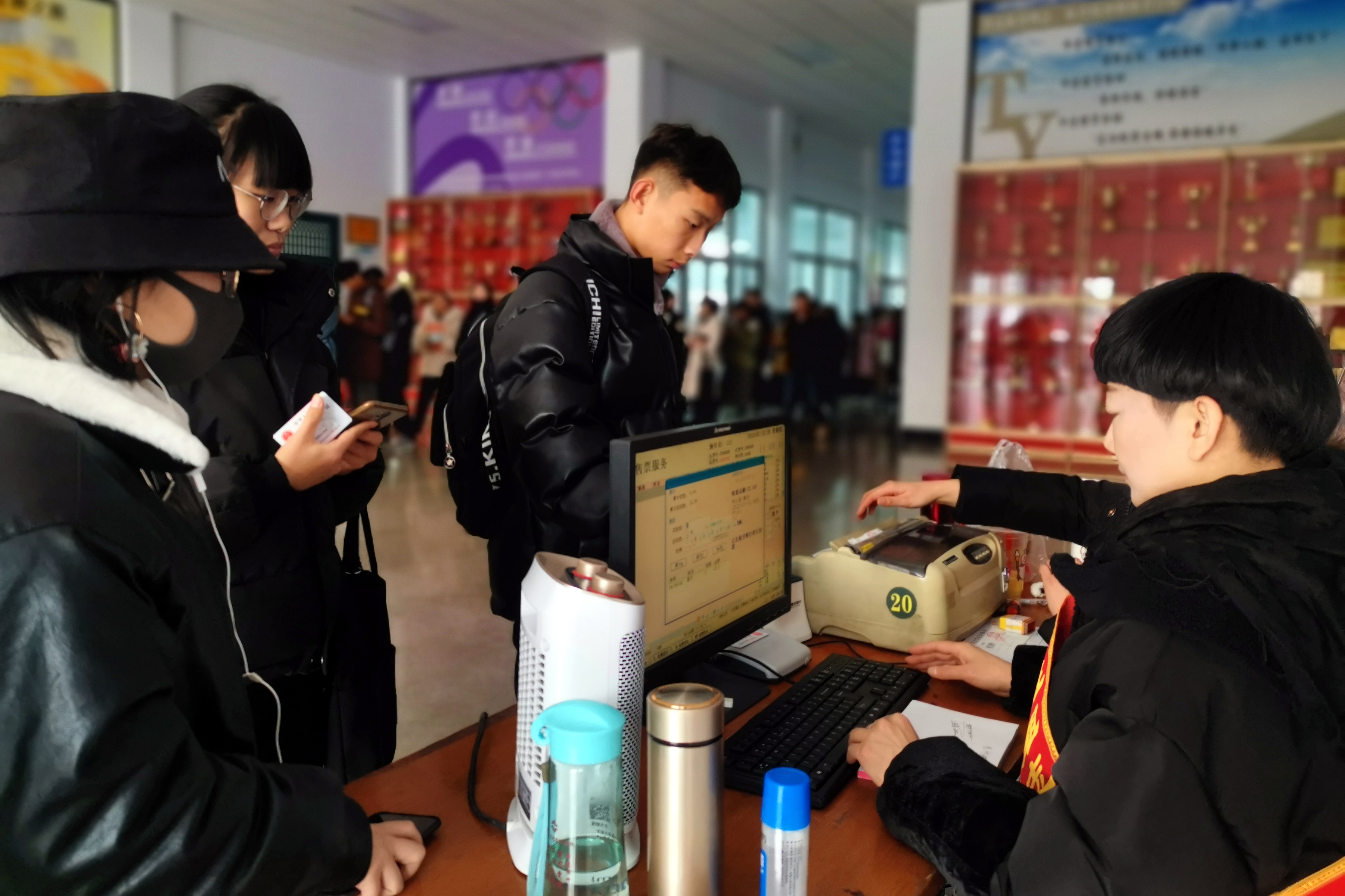 元旦刚过,该车站王静班组就立刻开启上门售票服务,由于今年过年较早,寒假放假时间也随之提前,王静班组于2日起便拉开了寒假上门售票的序幕。早上10点,该车站王静班组如约来到位于郑州龙湖高校区的郑州升达经贸管理学院的体育馆大厅,此时该校老师已备好了桌椅,并为他们准备了取暖器,方便车站工作人员售票。