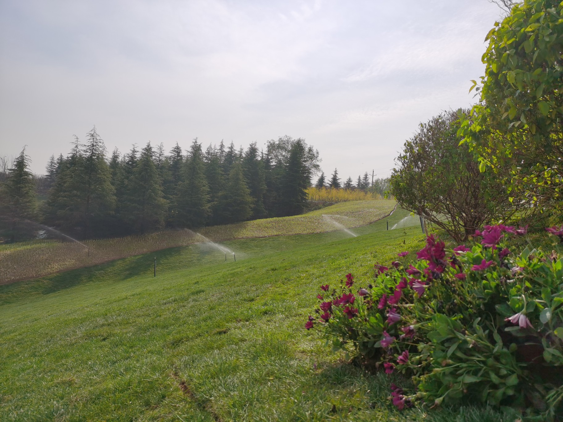 “山坡高低起伏,看起来像个高尔夫球场。”近日,一些开车路过郑州樱桃沟高速收费站的车主发现,下高速后,映入眼帘的是一大片绿色草坪,还种有樱桃树和月季花,非常养眼。