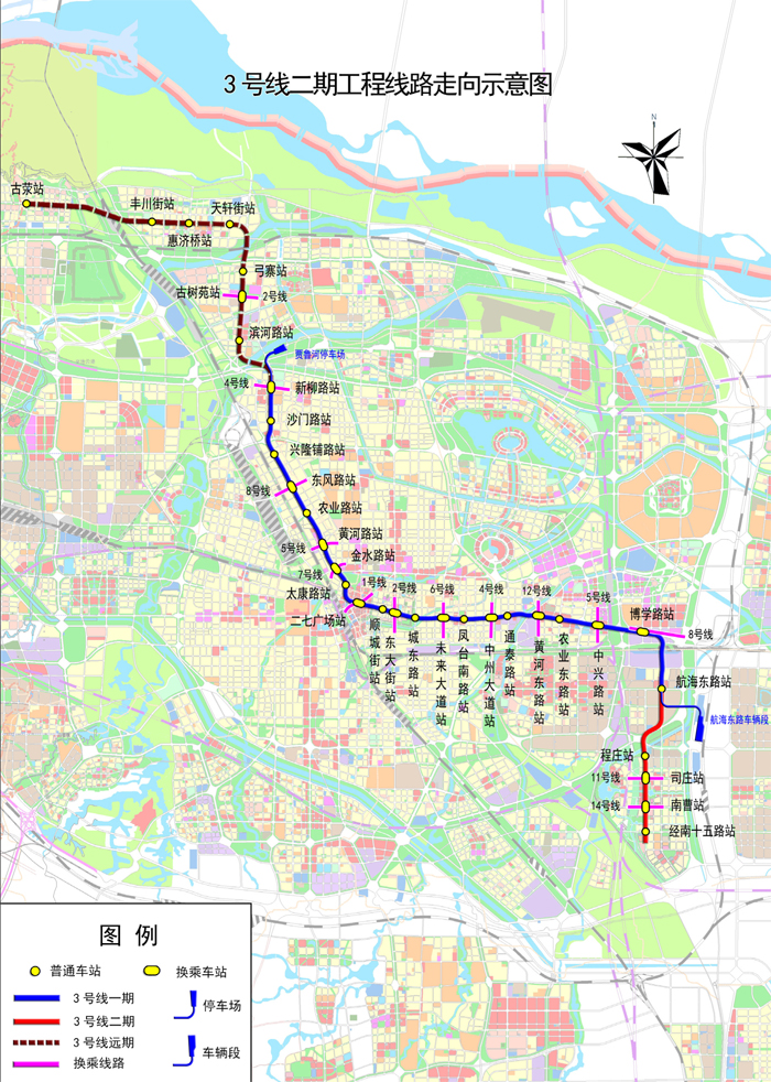 北段线路从惠济桥站至一期工程起点新柳路站,线路长约 9.3km,设站 5 座,此段线路未包含在发改委批复的第三期建设规划中;