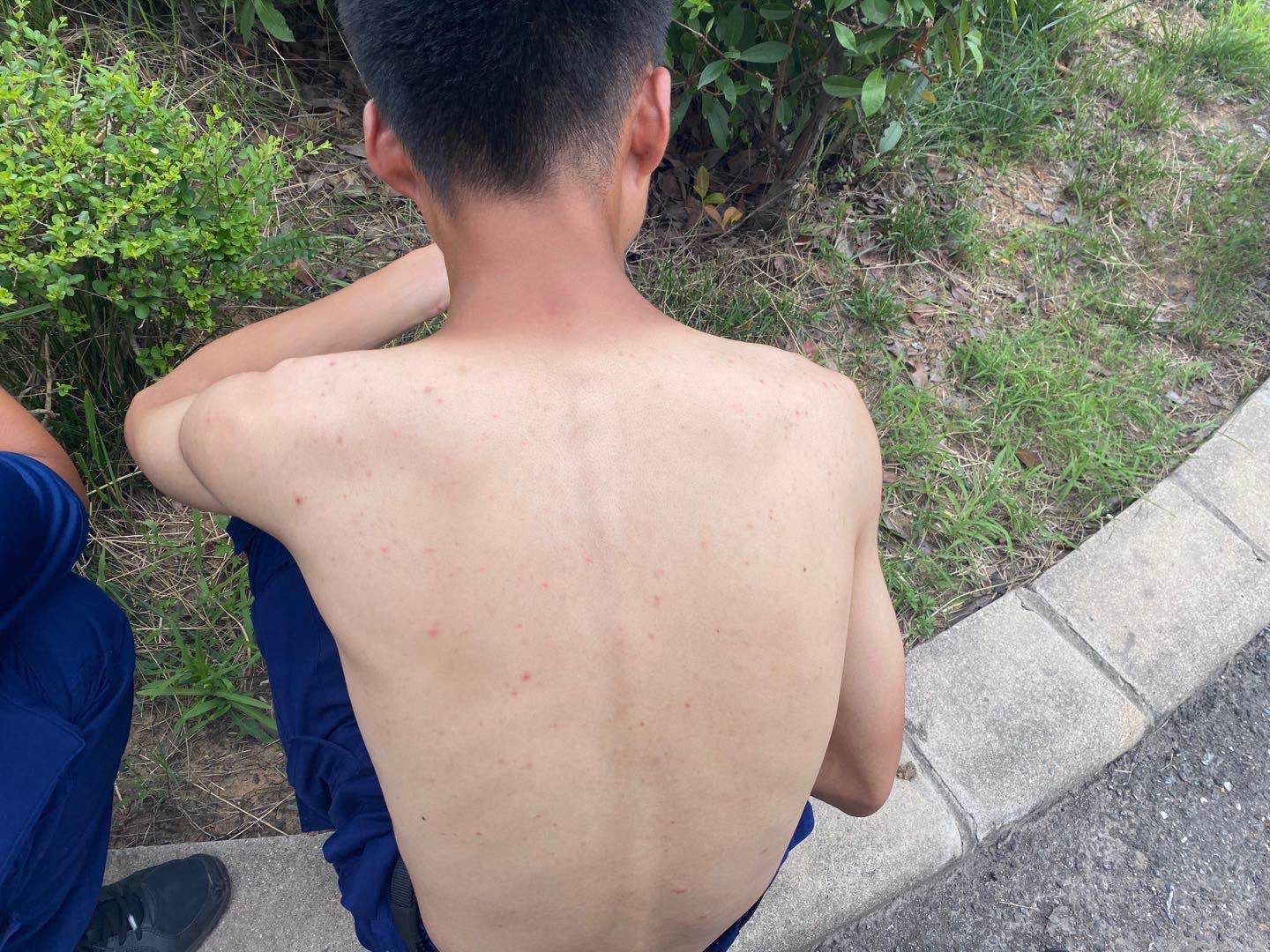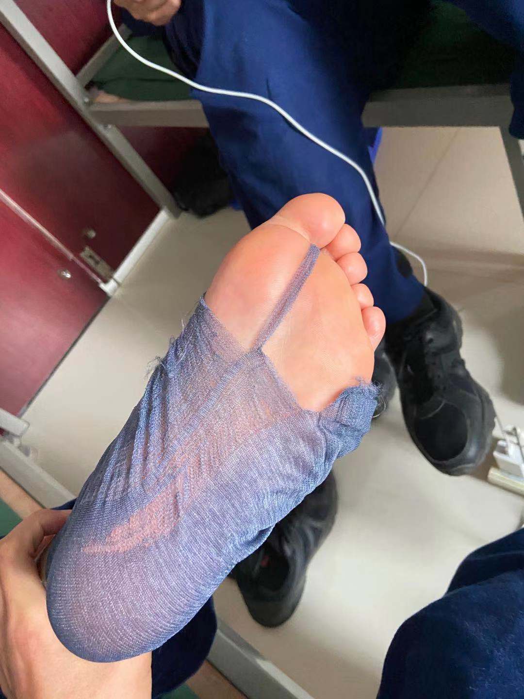 在抵郑的消防员队伍中,记者看到,他们当中,有的浑身是蚊子咬的包;有的脚被泡发白褶皱;有的脚上被鞋子磨了泡,茧子都已被磨破;有的脚部受伤。