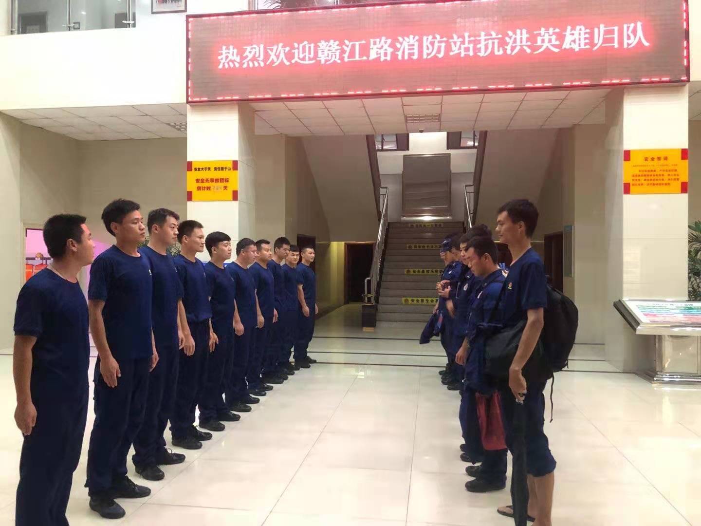 7月22日晚,在信阳坚守整整约20天之久、连续奋战30多个小时后,支援信阳抗洪救灾的郑州部分消防员抵郑,回防郑州。